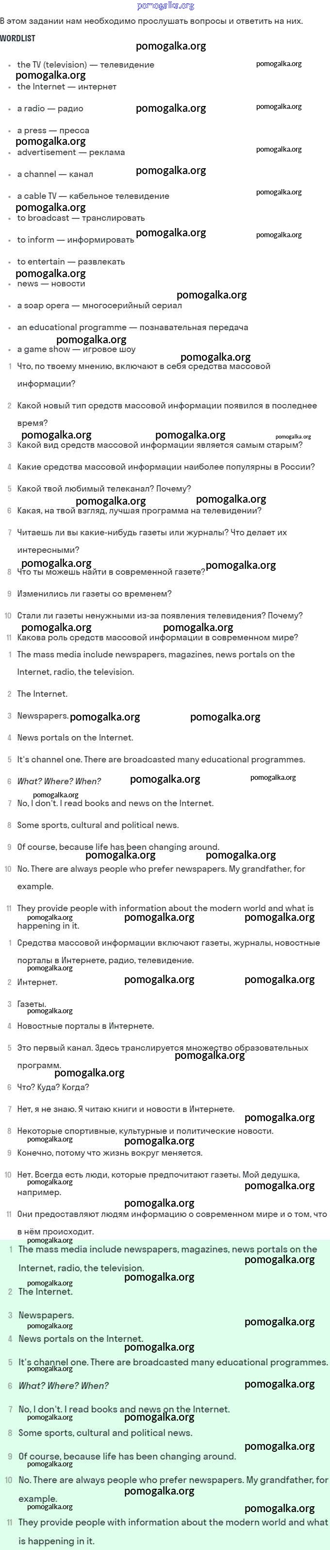 Unit 6. Newspapers and Television: The World of Mass Media №1-84