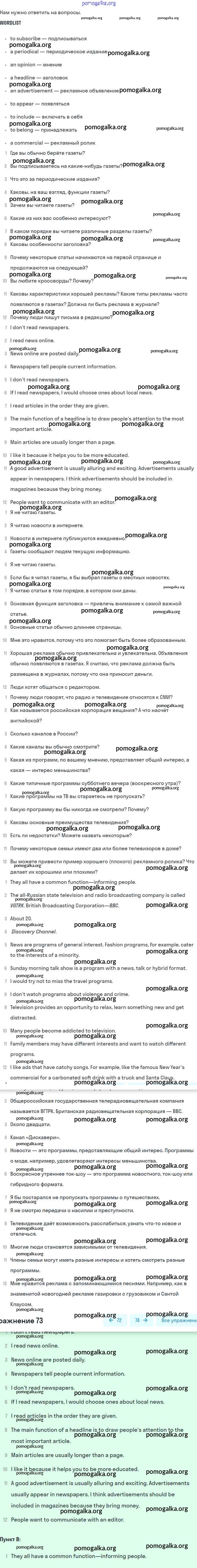 Unit 6. Newspapers and Television: The World of Mass Media №1-84