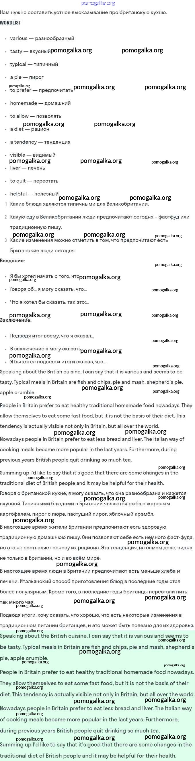 Структурированное пособие на каждый урок