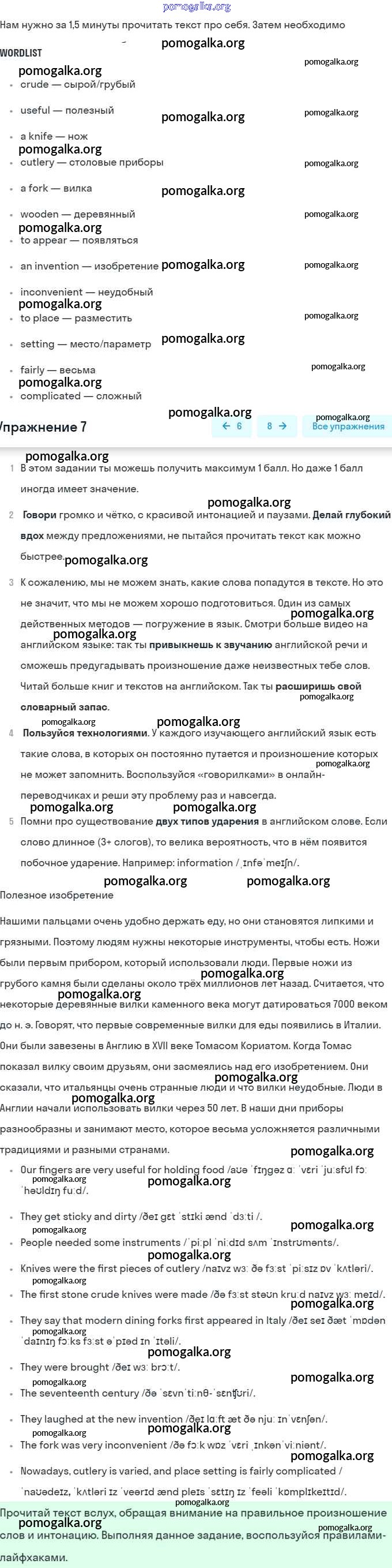 Готовые ответы - Английский язык 8 класс Афанасьева (Углубленный уровень) - unit 4 get ready 7