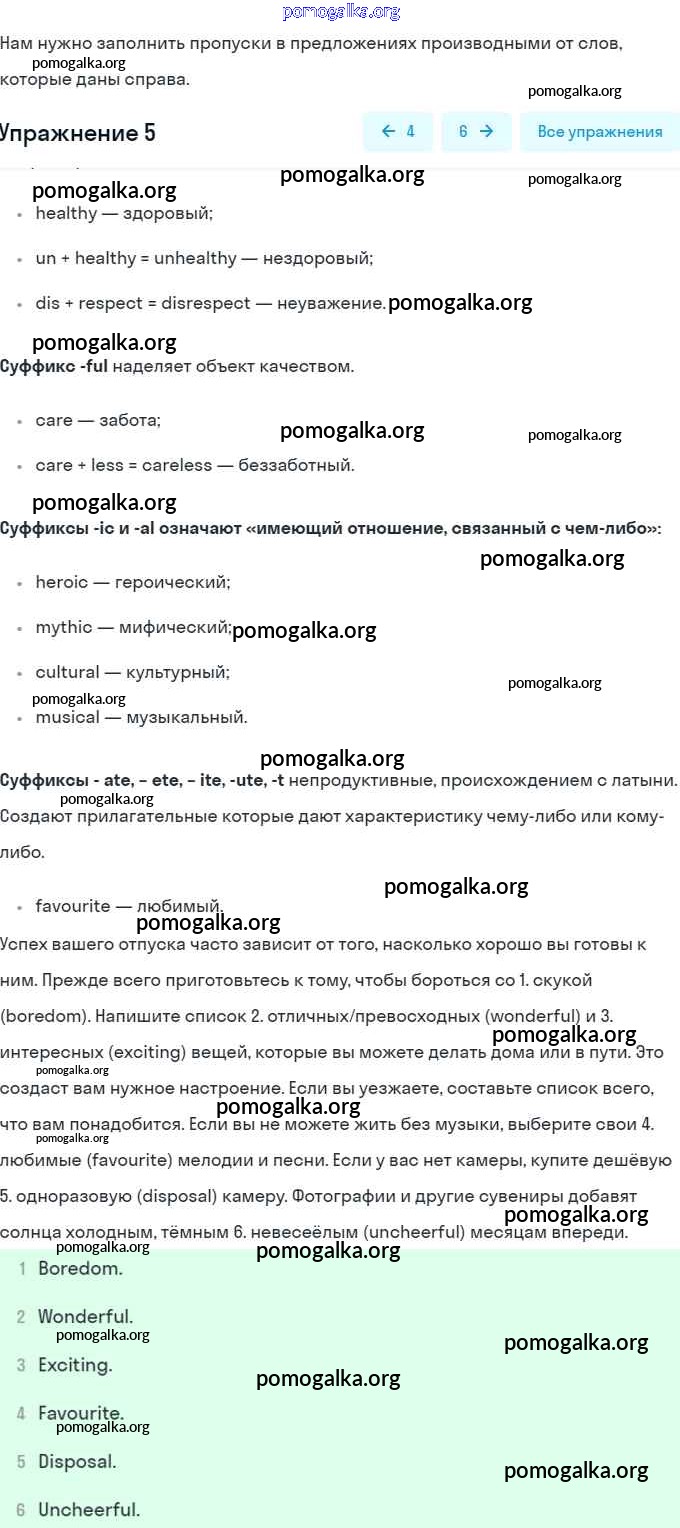 Готовые ответы - Английский язык 8 класс Афанасьева (Углубленный уровень) - unit 6 get ready 5
