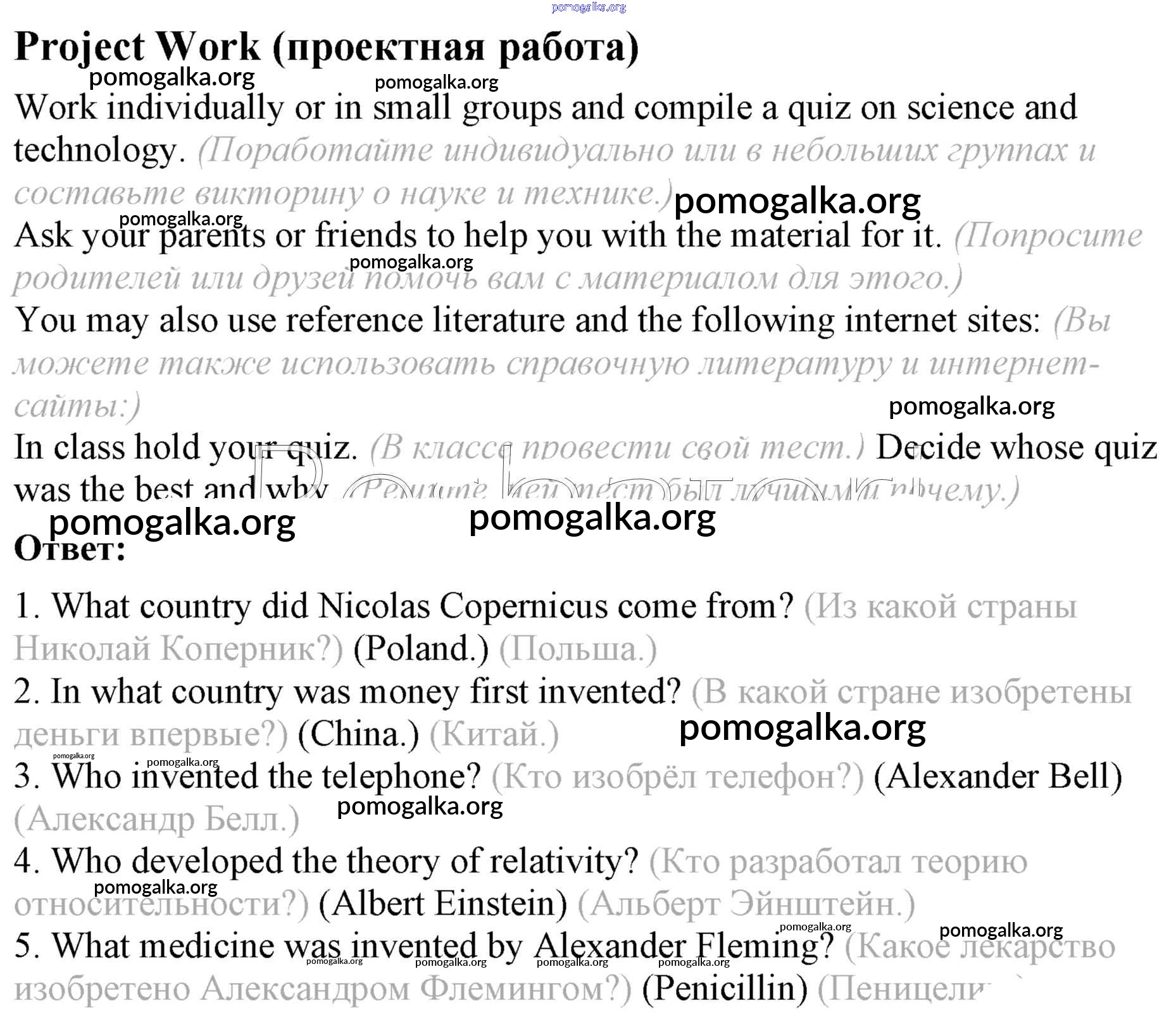 Готовые ответы - Английский язык 8 класс Афанасьева (Углубленный уровень) - unit 4 Project Work