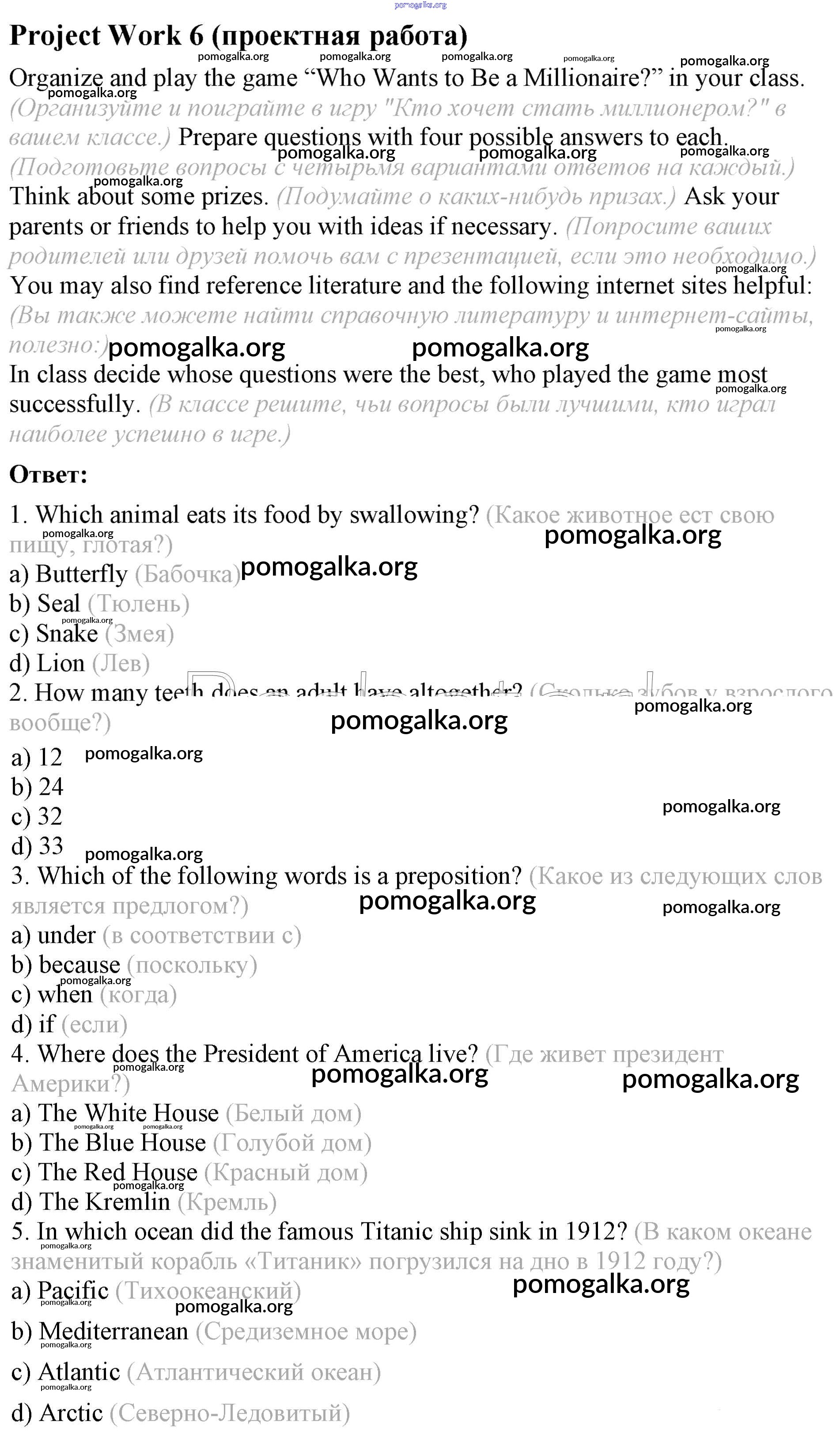 Готовые ответы - Английский язык 8 класс Афанасьева (Углубленный уровень) - unit 6 Project Work