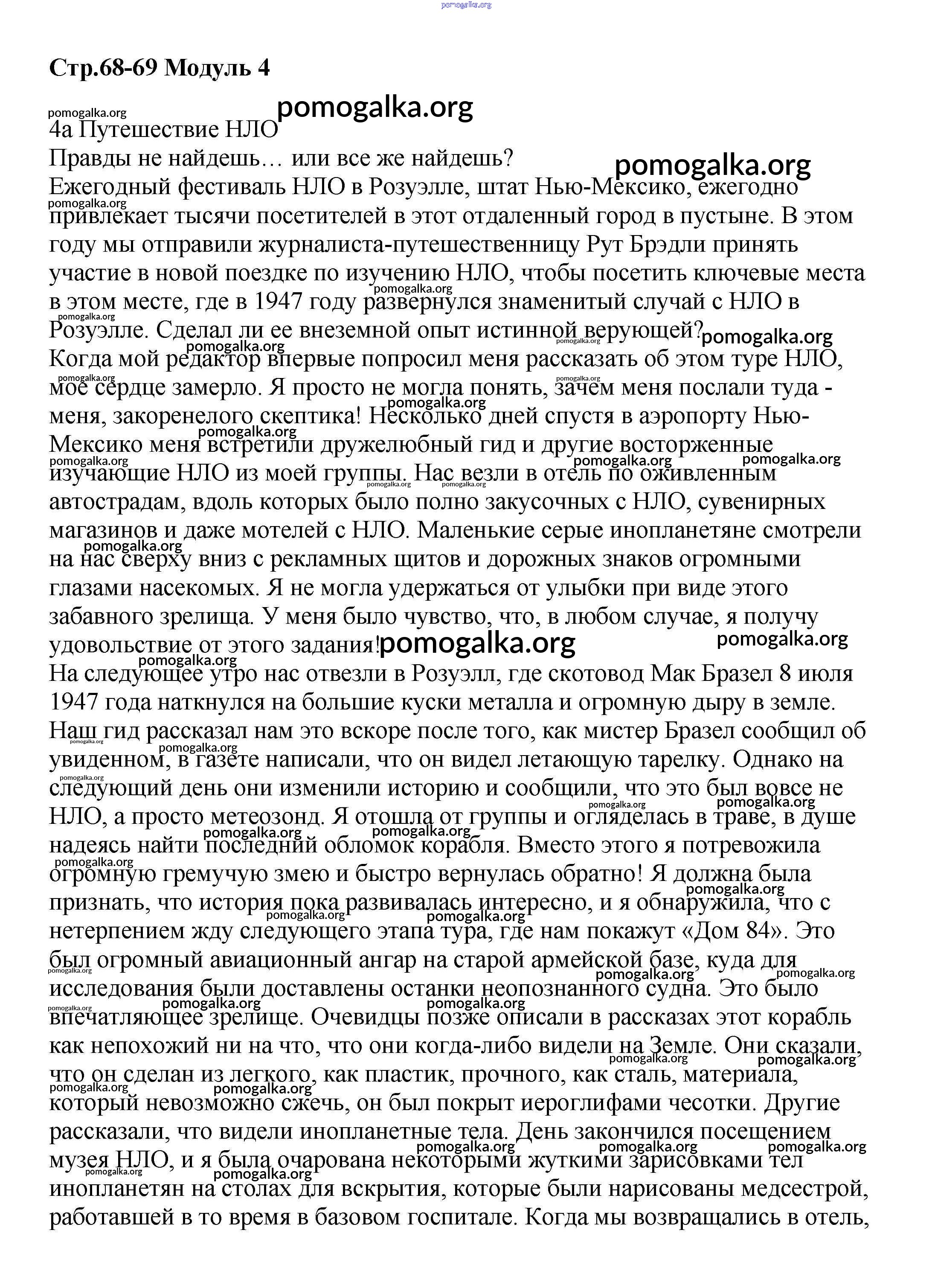 Готовые ответы - Английский язык 8 класс Starlight Баранова К.М. - module 4 68-69