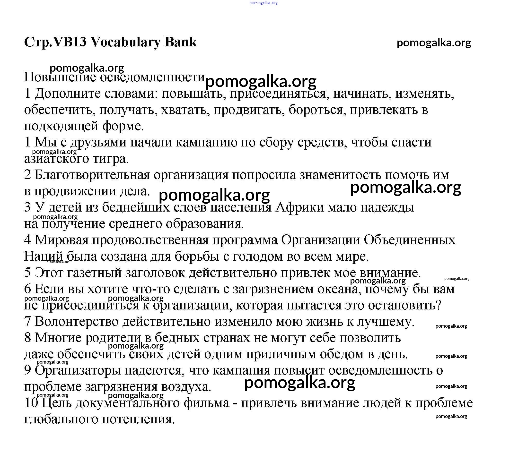 Готовые ответы - Английский язык 8 класс Starlight Баранова К.М. - vocabulary bank VB13