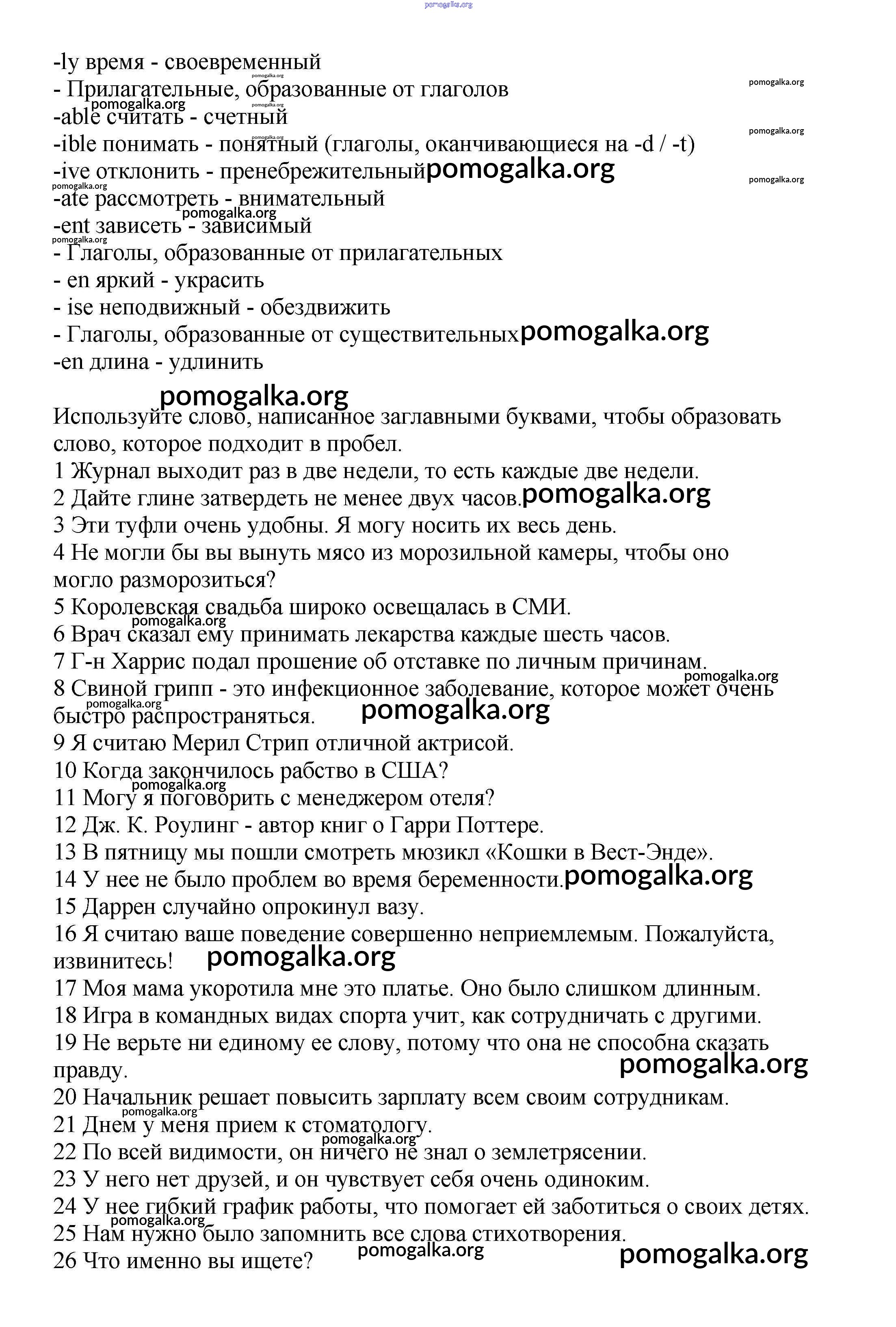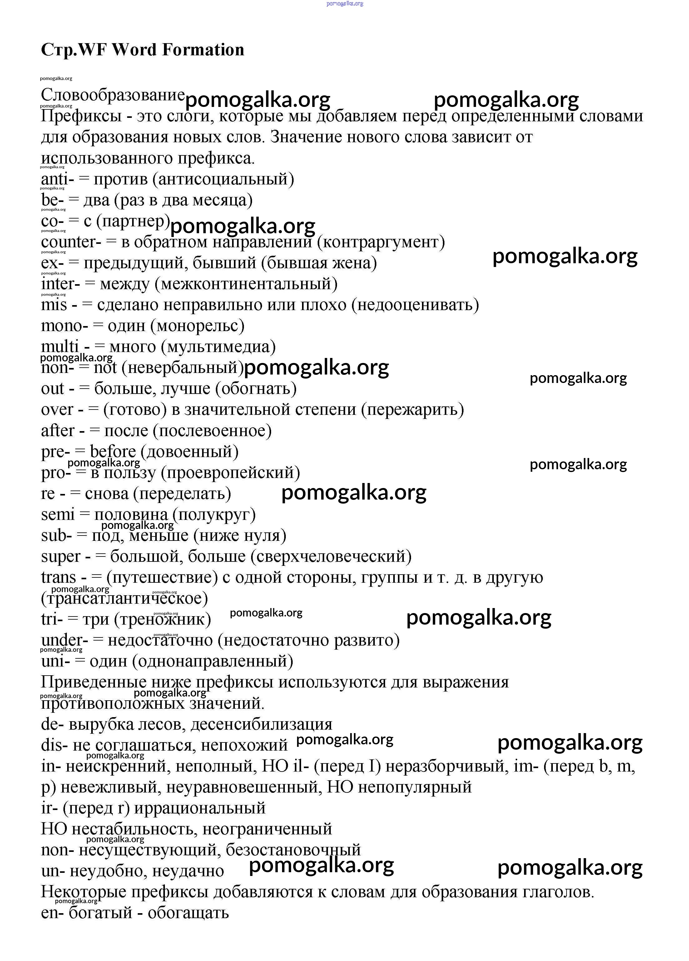Готовые ответы - Английский язык 8 класс Starlight Баранова К.М. - word formation WF1-WF3