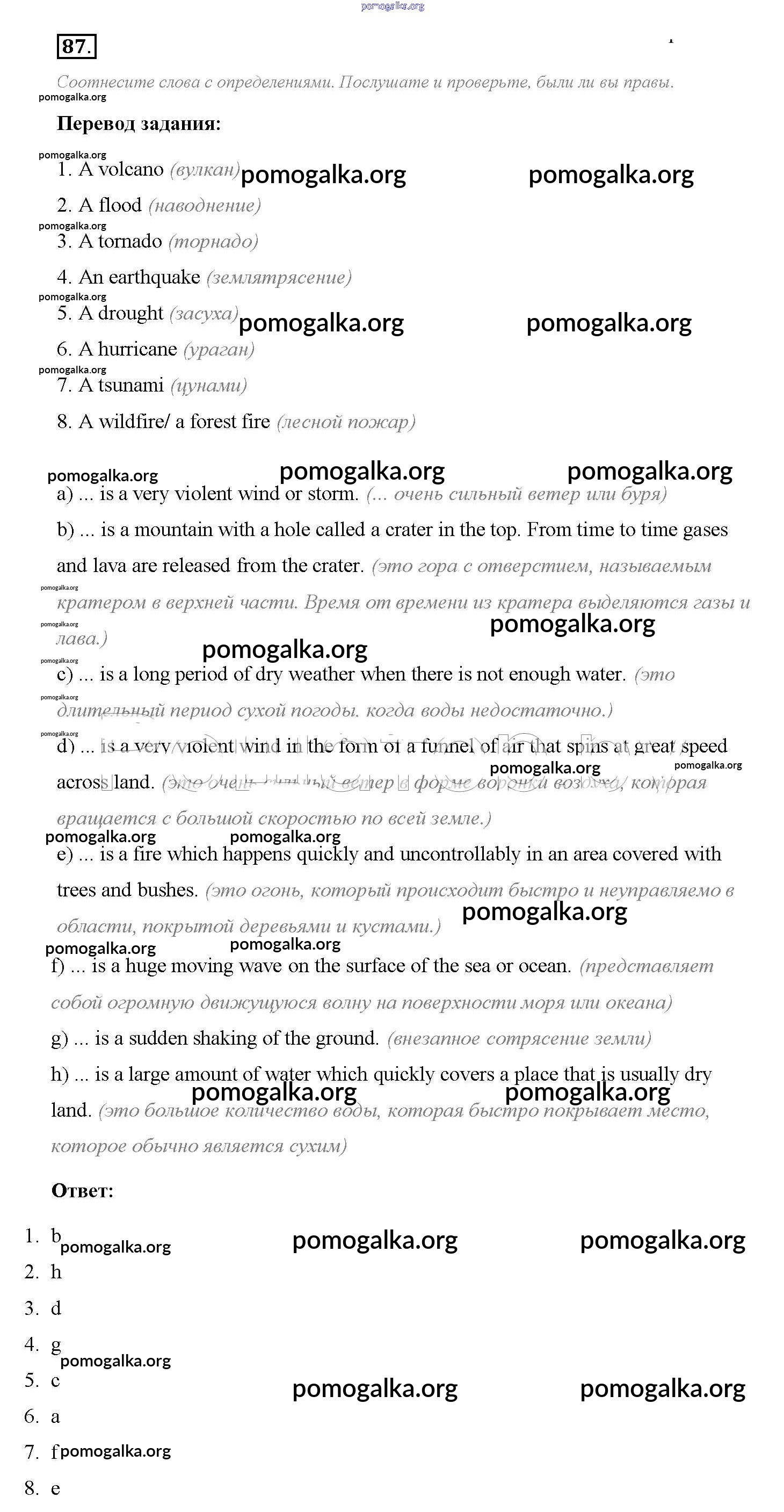 Готовые ответы - Английский язык 8 класс Enjoy English Биболетова М.З. - section 5 unit 1 87
