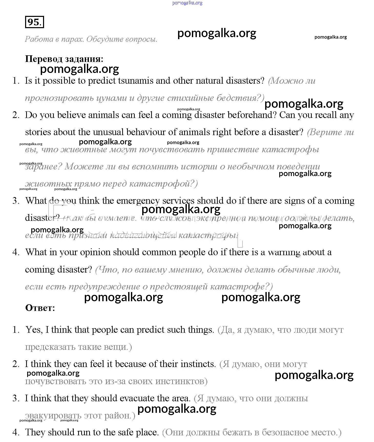 Готовые ответы - Английский язык 8 класс Enjoy English Биболетова М.З. - section 5 unit 1 95