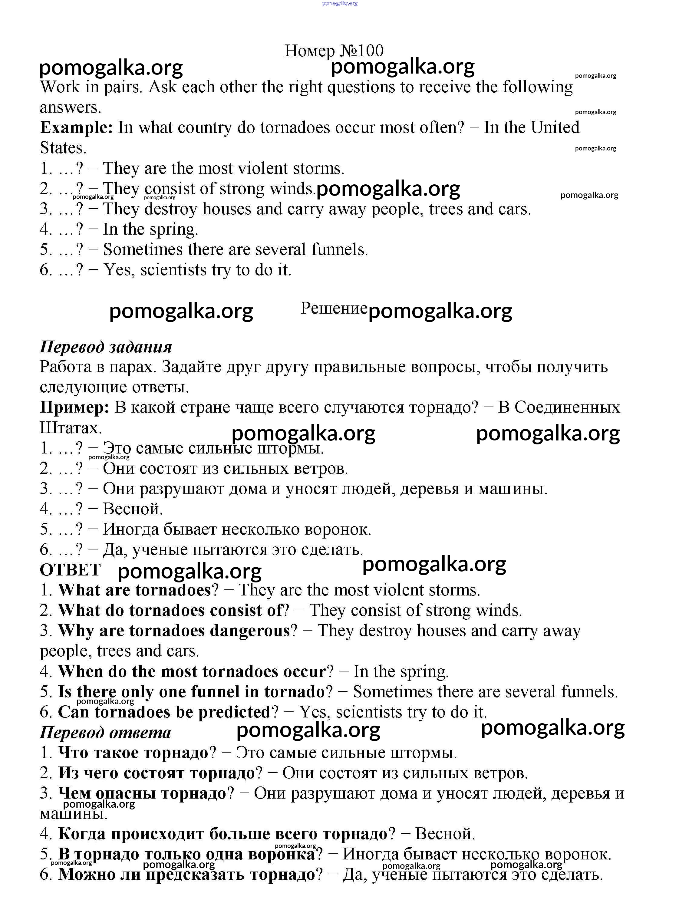Готовые ответы - Английский язык 8 класс Enjoy English Биболетова М.З. - section 6 unit 1 100