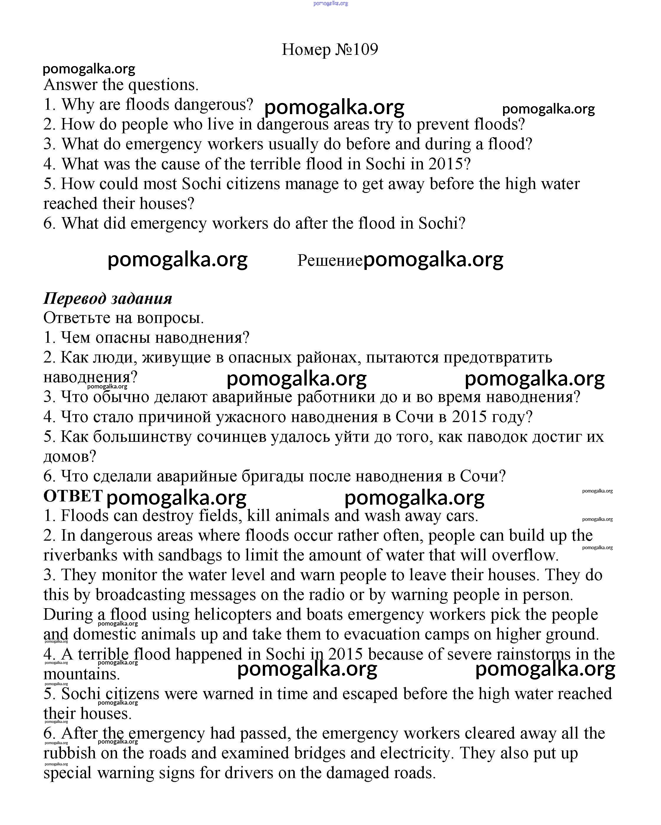 Готовые ответы - Английский язык 8 класс Enjoy English Биболетова М.З. - section 6 unit 1 109