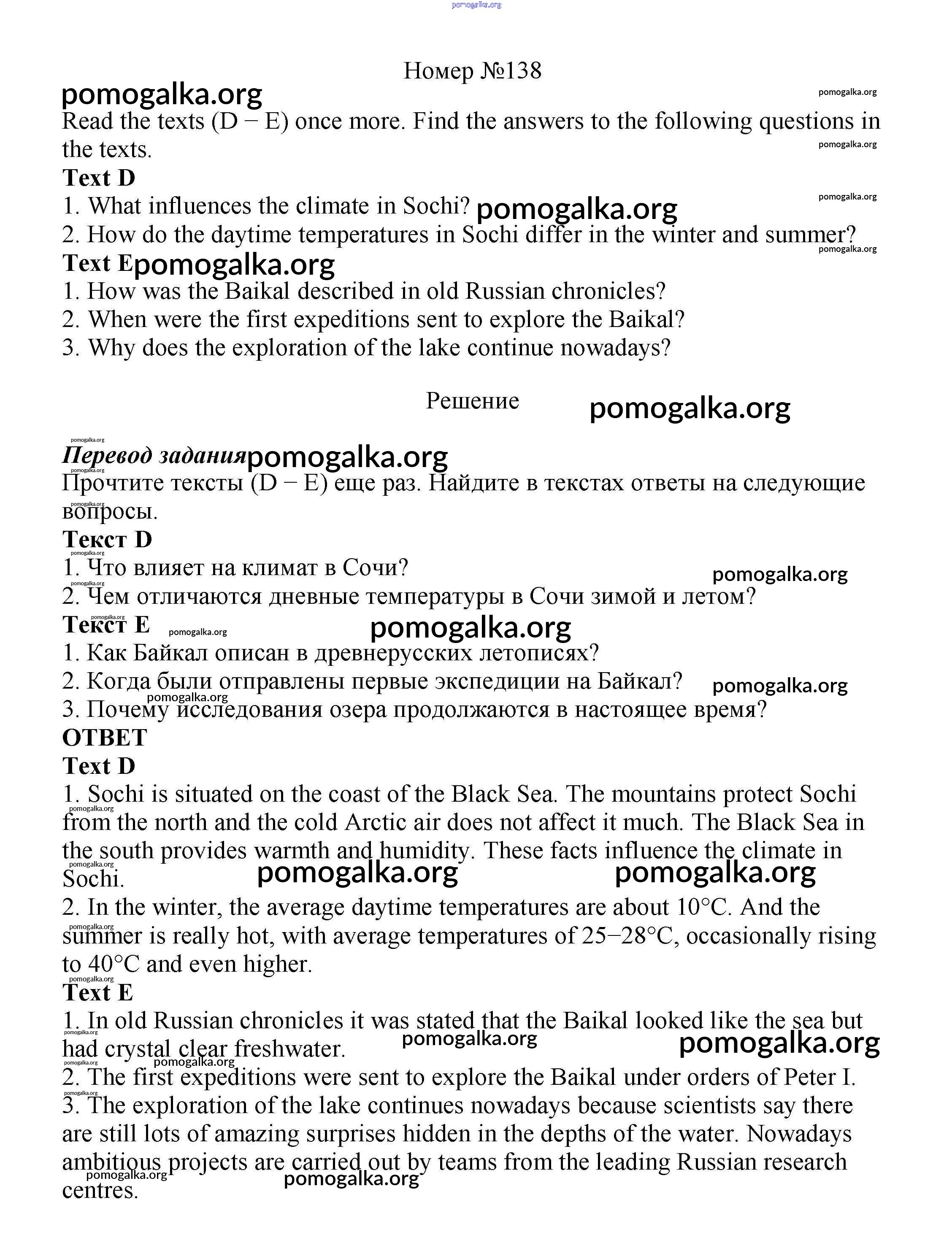Готовые ответы - Английский язык 8 класс Enjoy English Биболетова М.З. - section 7 unit 1 138