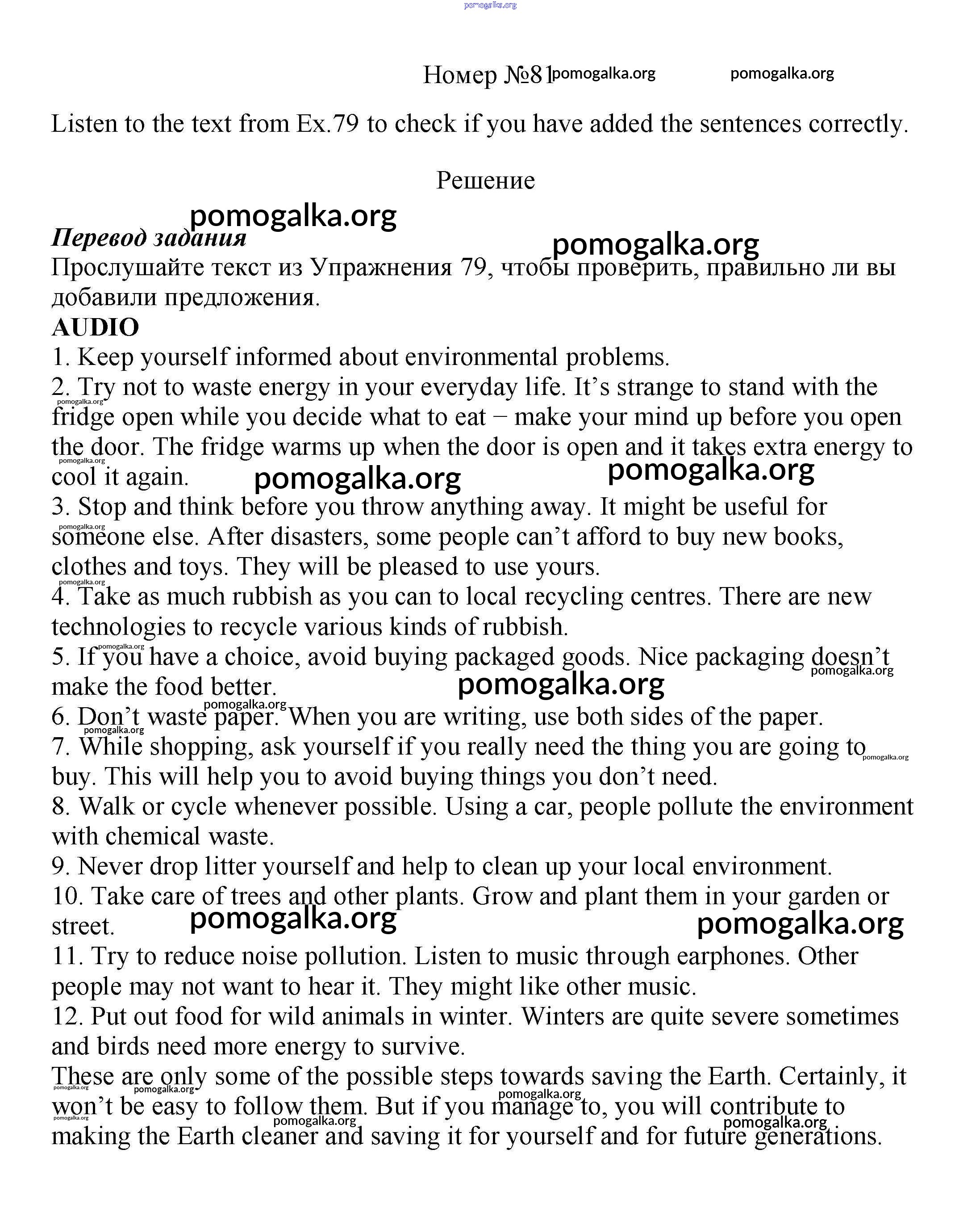 Готовые ответы - Английский язык 8 класс Enjoy English Биболетова М.З. - section 5 unit 2 81