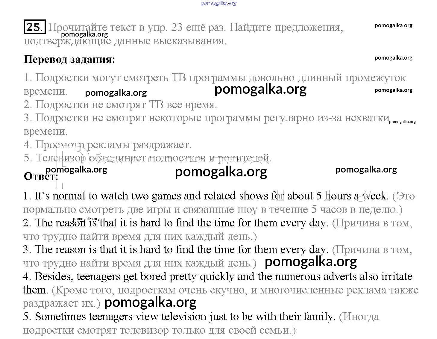 Готовые ответы - Английский язык 8 класс Enjoy English Биболетова М.З. - section 2 unit 3 25