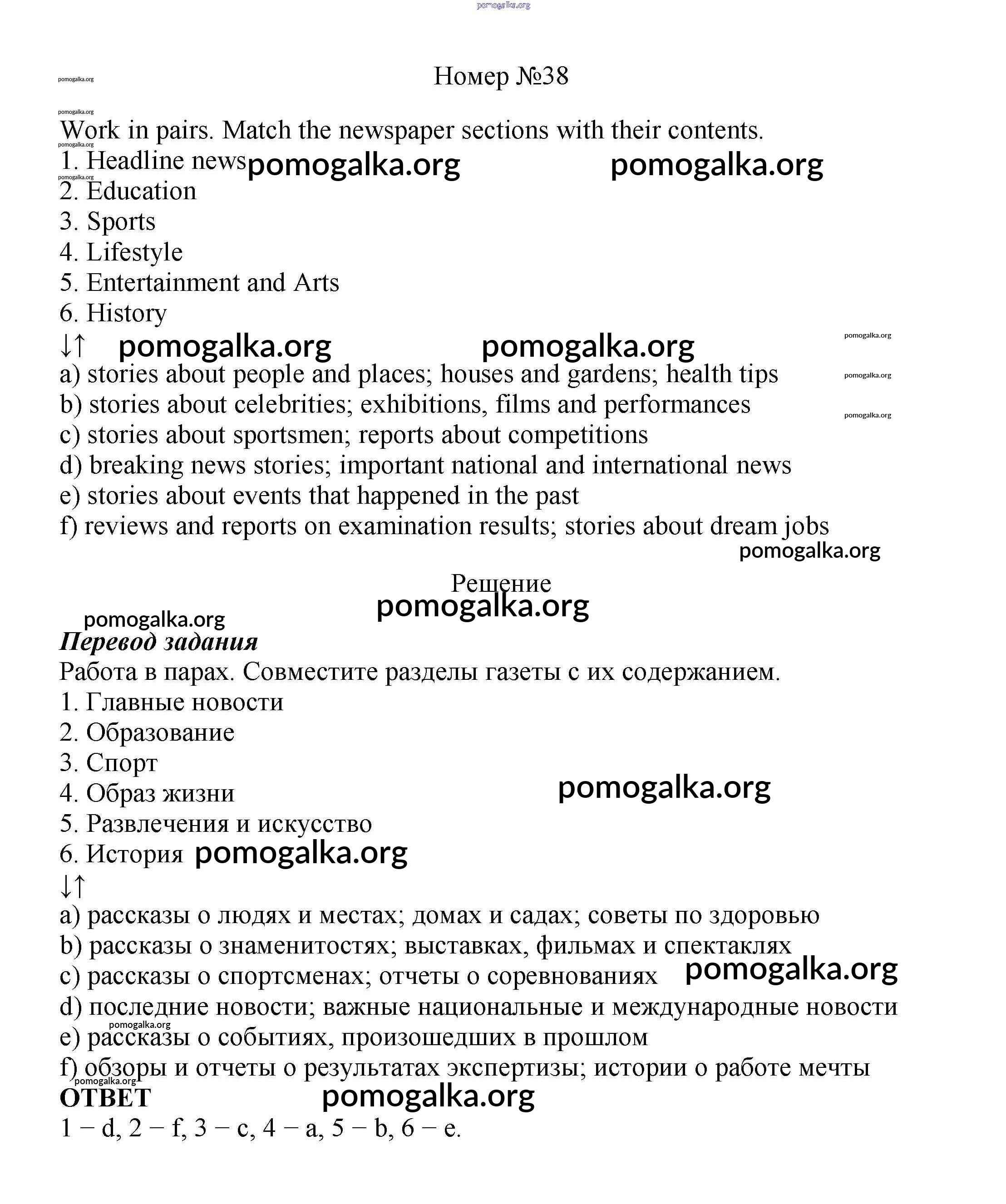 Готовые ответы - Английский язык 8 класс Enjoy English Биболетова М.З. - section 3 unit 3 38