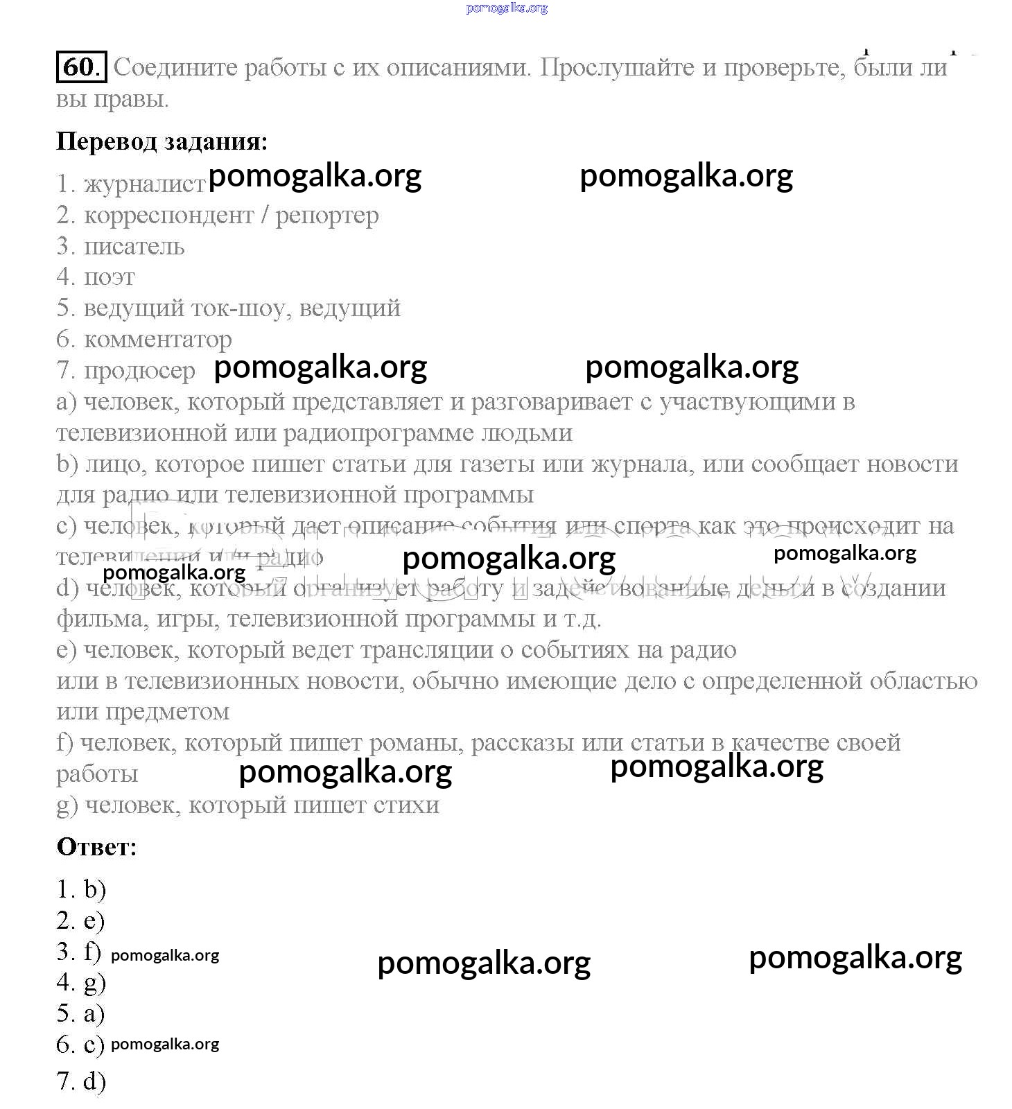 Готовые ответы - Английский язык 8 класс Enjoy English Биболетова М.З. - section 4 unit 3 60
