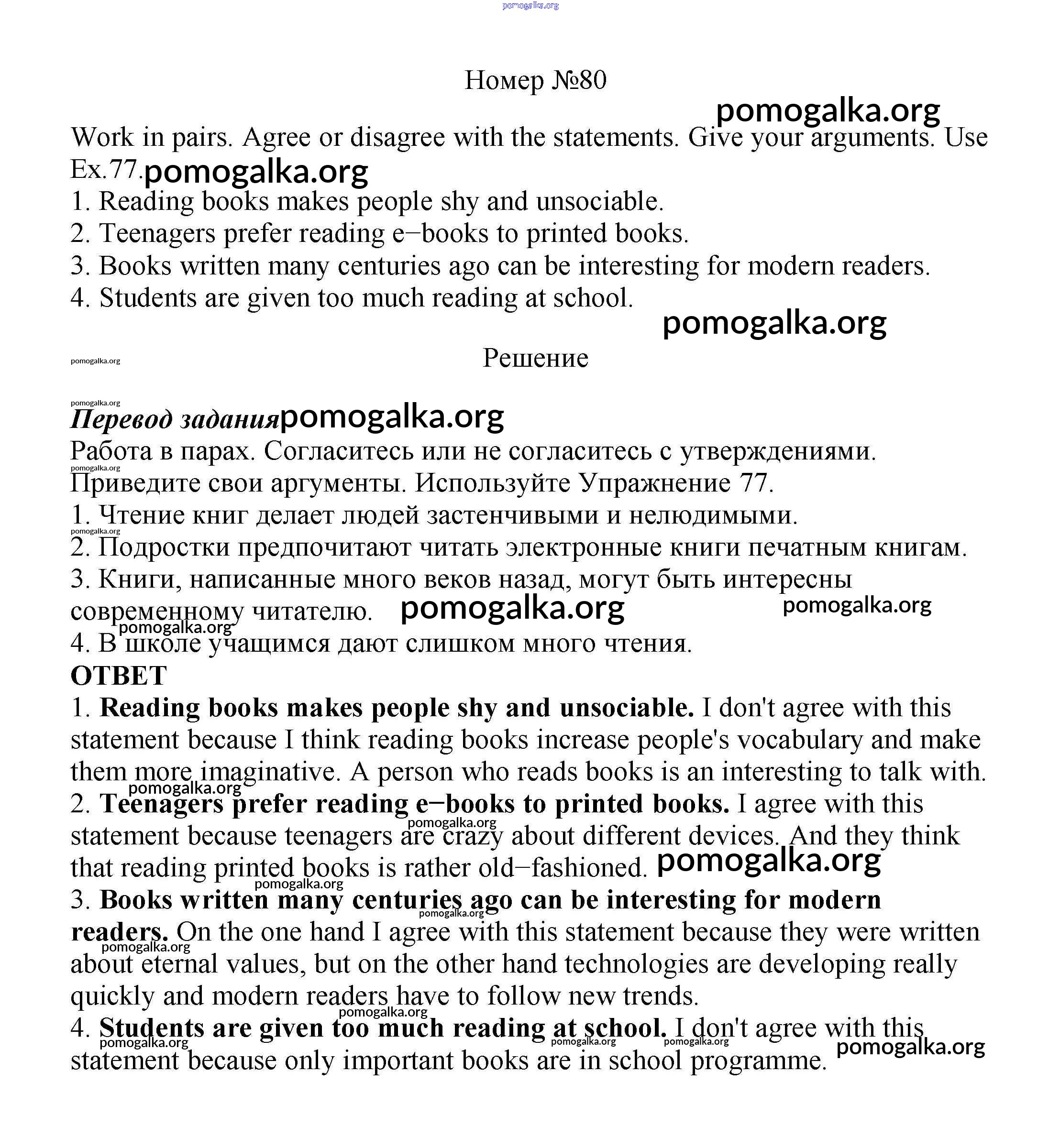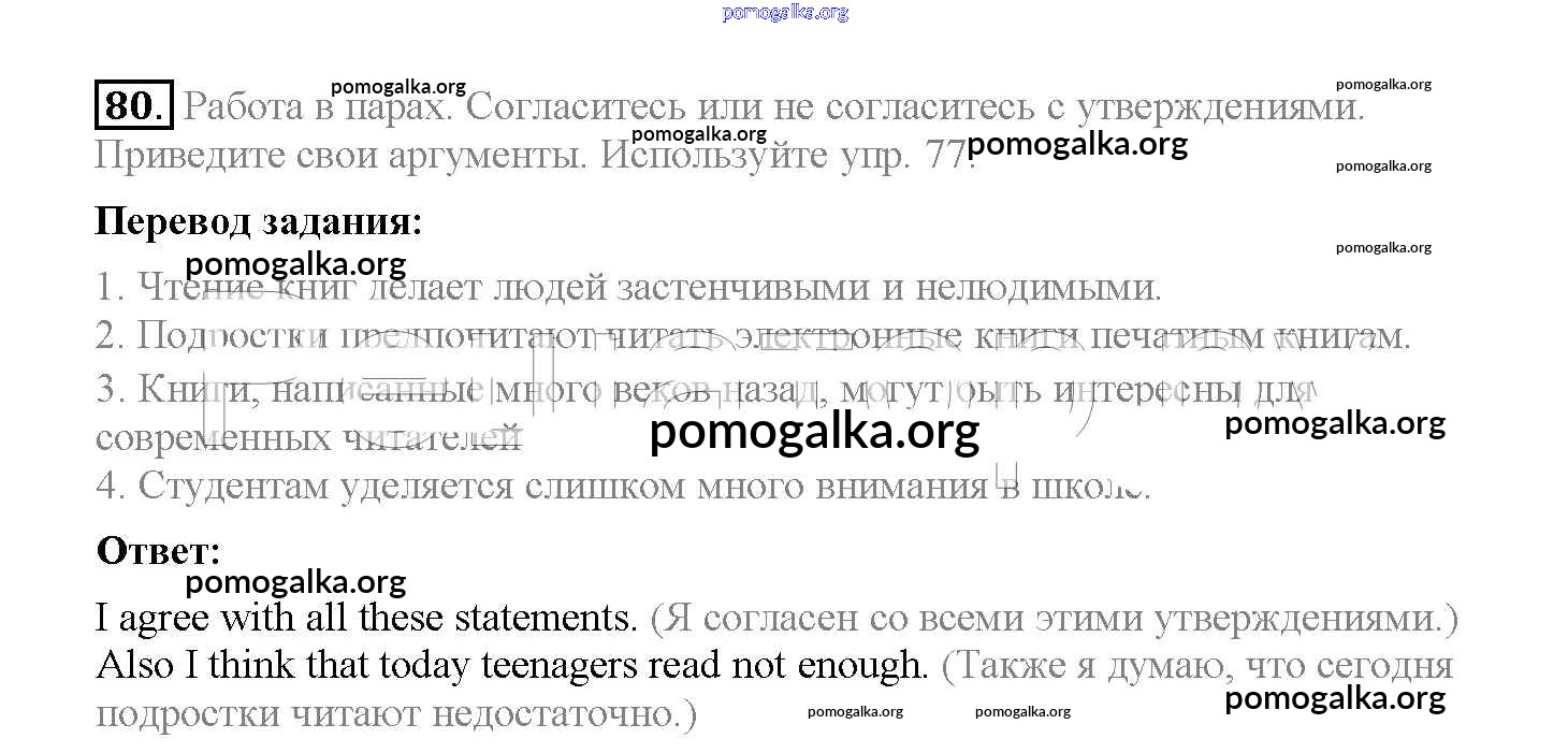 Готовые ответы - Английский язык 8 класс Enjoy English Биболетова М.З. - section 6 unit 3 80