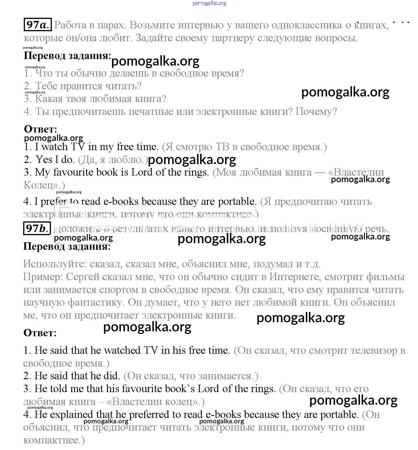 Готовые ответы - Английский язык 8 класс Enjoy English Биболетова М.З. - section 7 unit 3 97