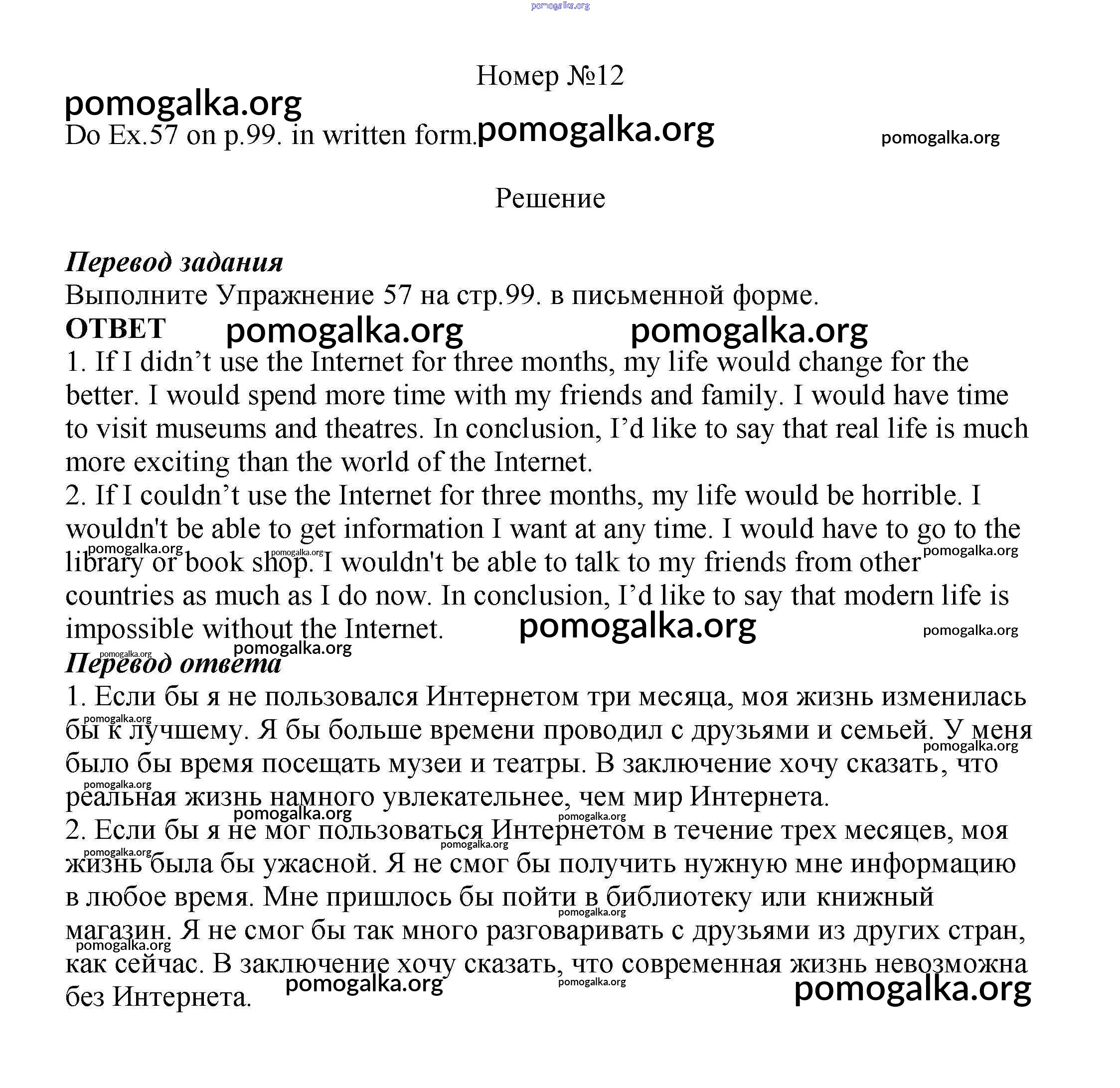 Готовые ответы - Английский язык 8 класс Enjoy English Биболетова М.З. - homework unit 3 12