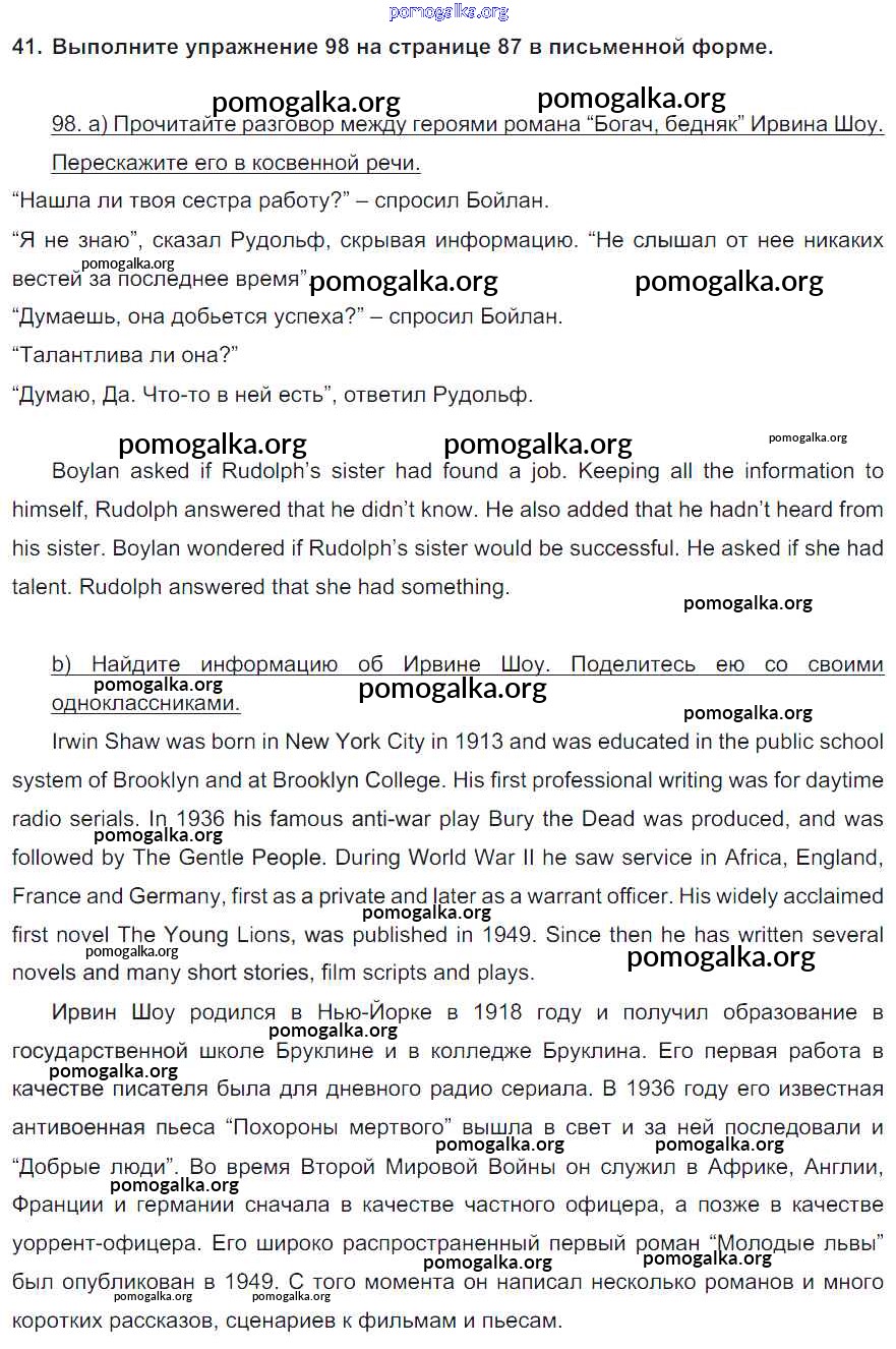 Готовые ответы - Английский язык 8 класс Enjoy English Биболетова М.З. - homework unit 3 41
