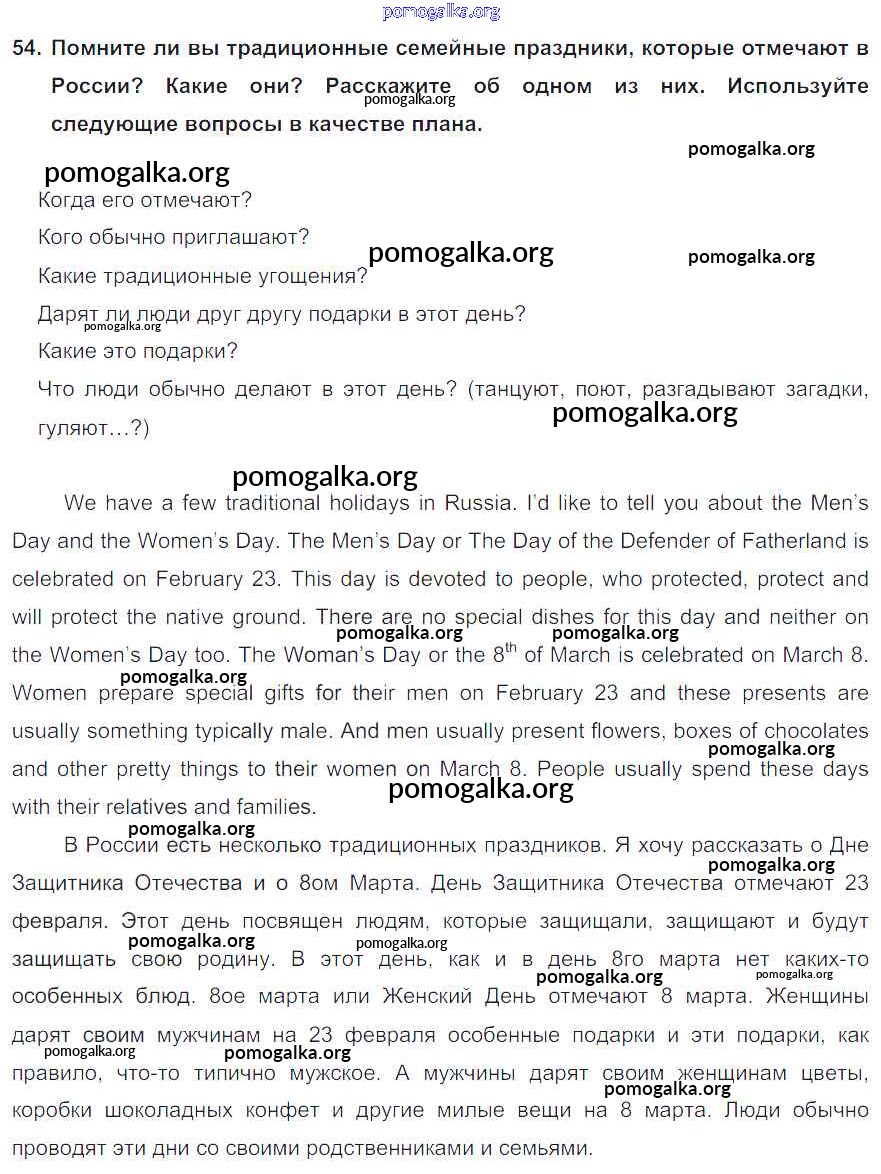 Готовые ответы - Английский язык 8 класс Enjoy English Биболетова М.З. - section 4 unit 4 54