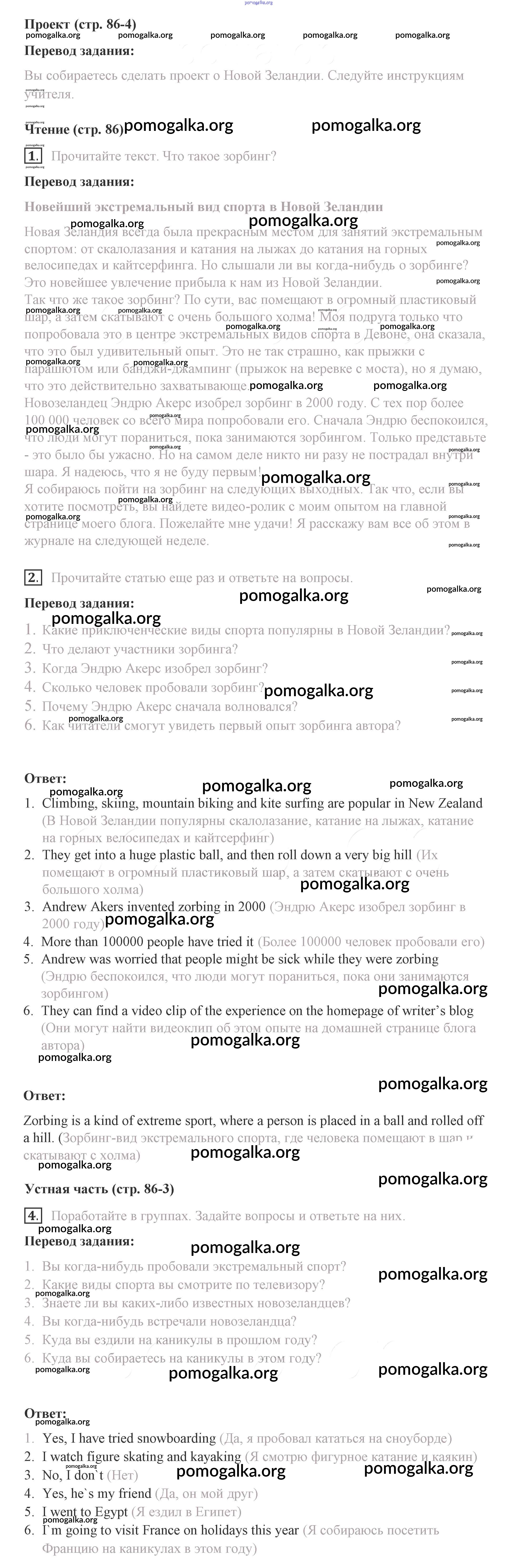 Готовые ответы - Английский язык 8 класс Комарова Ю.А. - страница 86