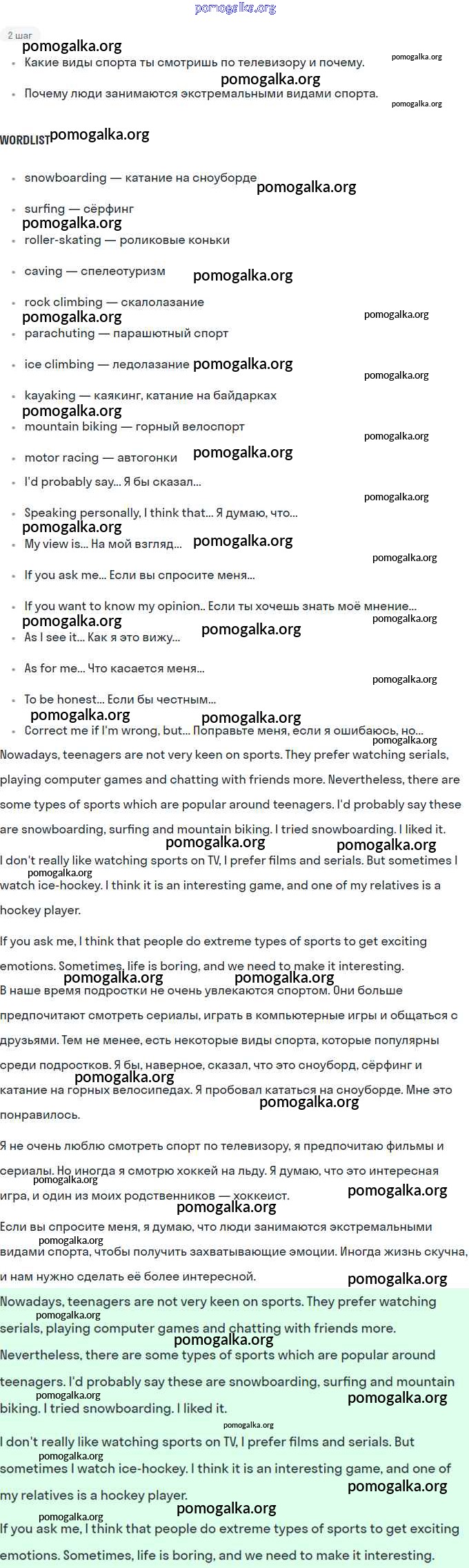 Структурированное пособие на каждый урок
