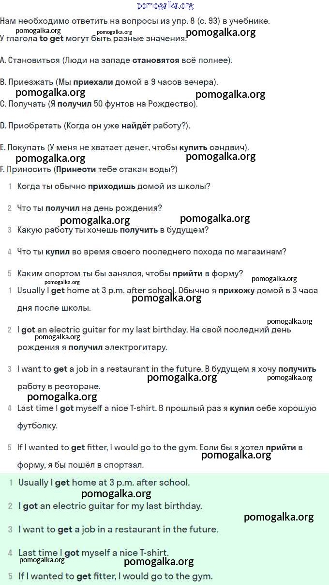 Готовые ответы - Английский язык 8 класс Комарова Ю.А. - страница 93