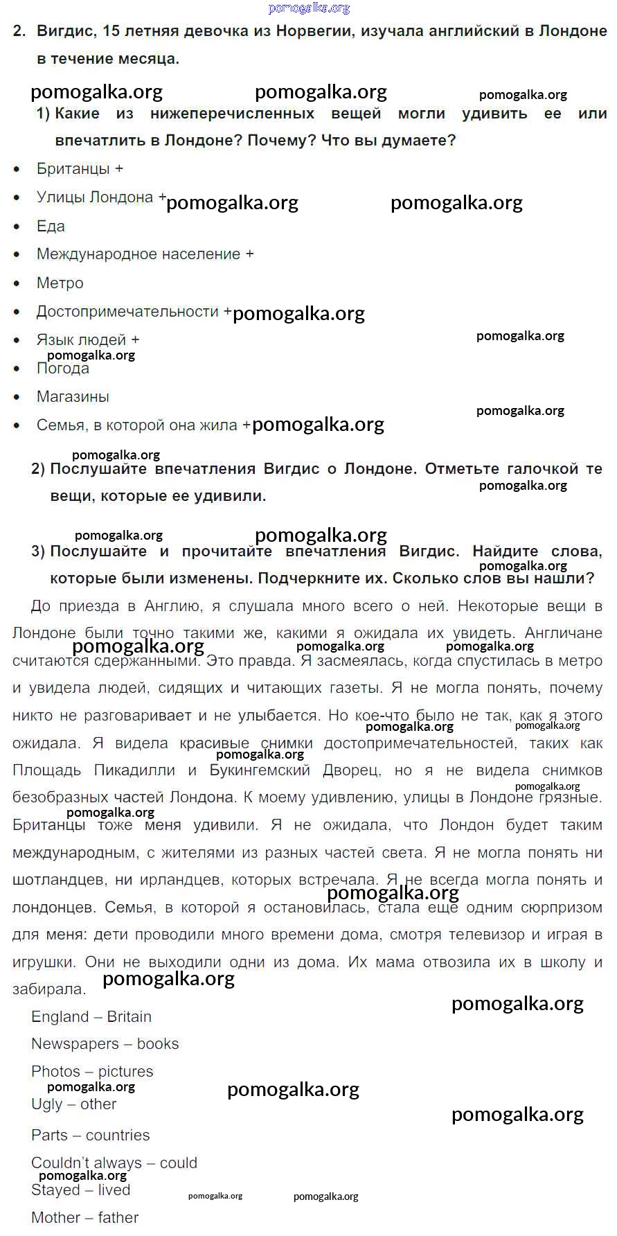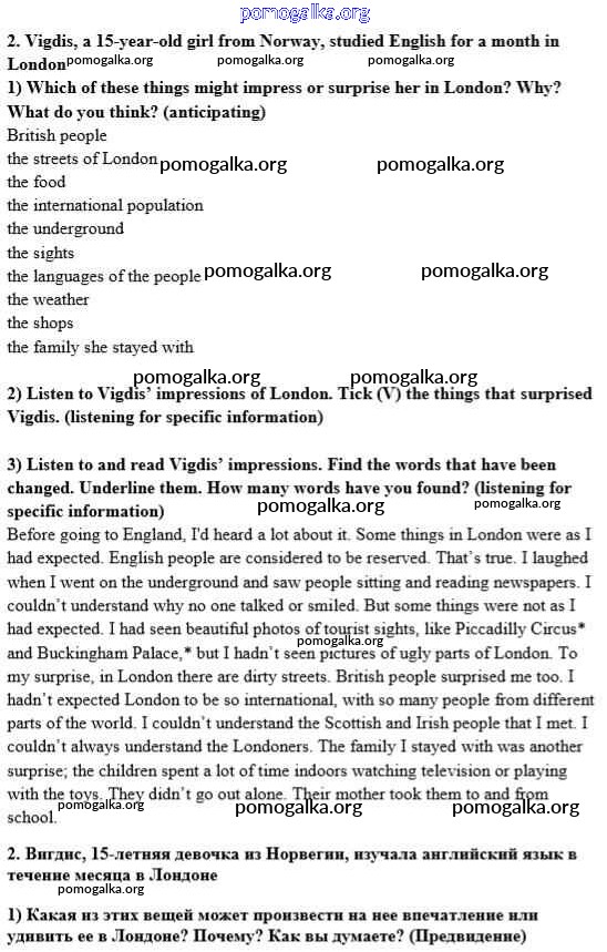 Готовые ответы - Английский язык 8 класс Кузовлев В.П. - lesson 5 unit 1 2
