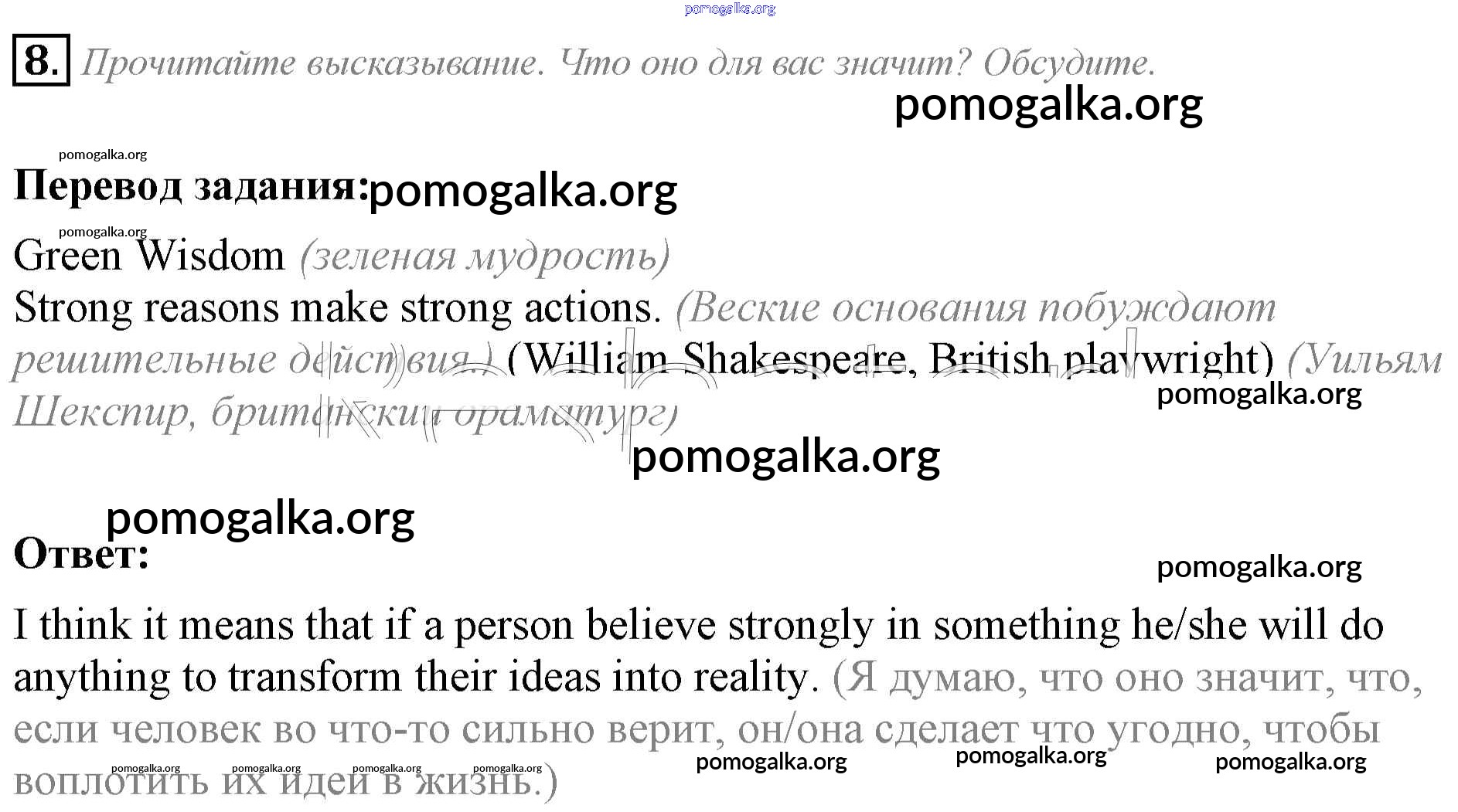 Готовые ответы - Английский язык 8 класс Spotlight Ваулина Ю.Е. - Going Green module 2 8