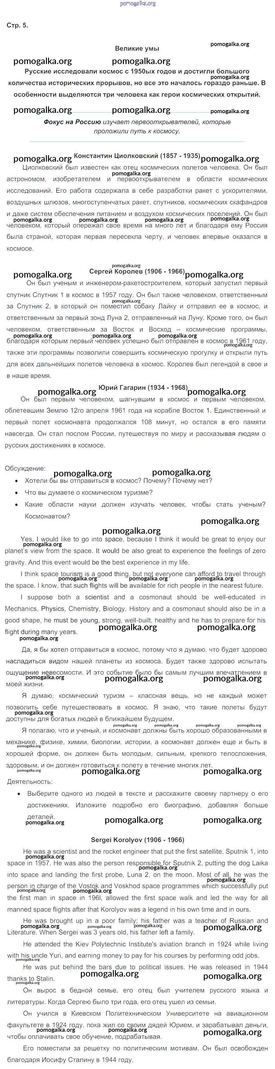 Готовые ответы - Английский язык 8 класс Spotlight Ваулина Ю.Е. - Spotlight on Russia (страницы) 5