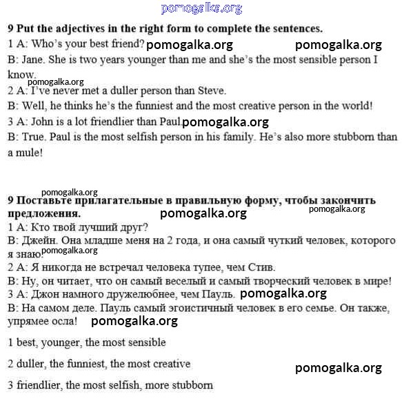 Готовые ответы - Английский язык 8 класс Spotlight Ваулина Ю.Е. - module 1 Grammar Check 9