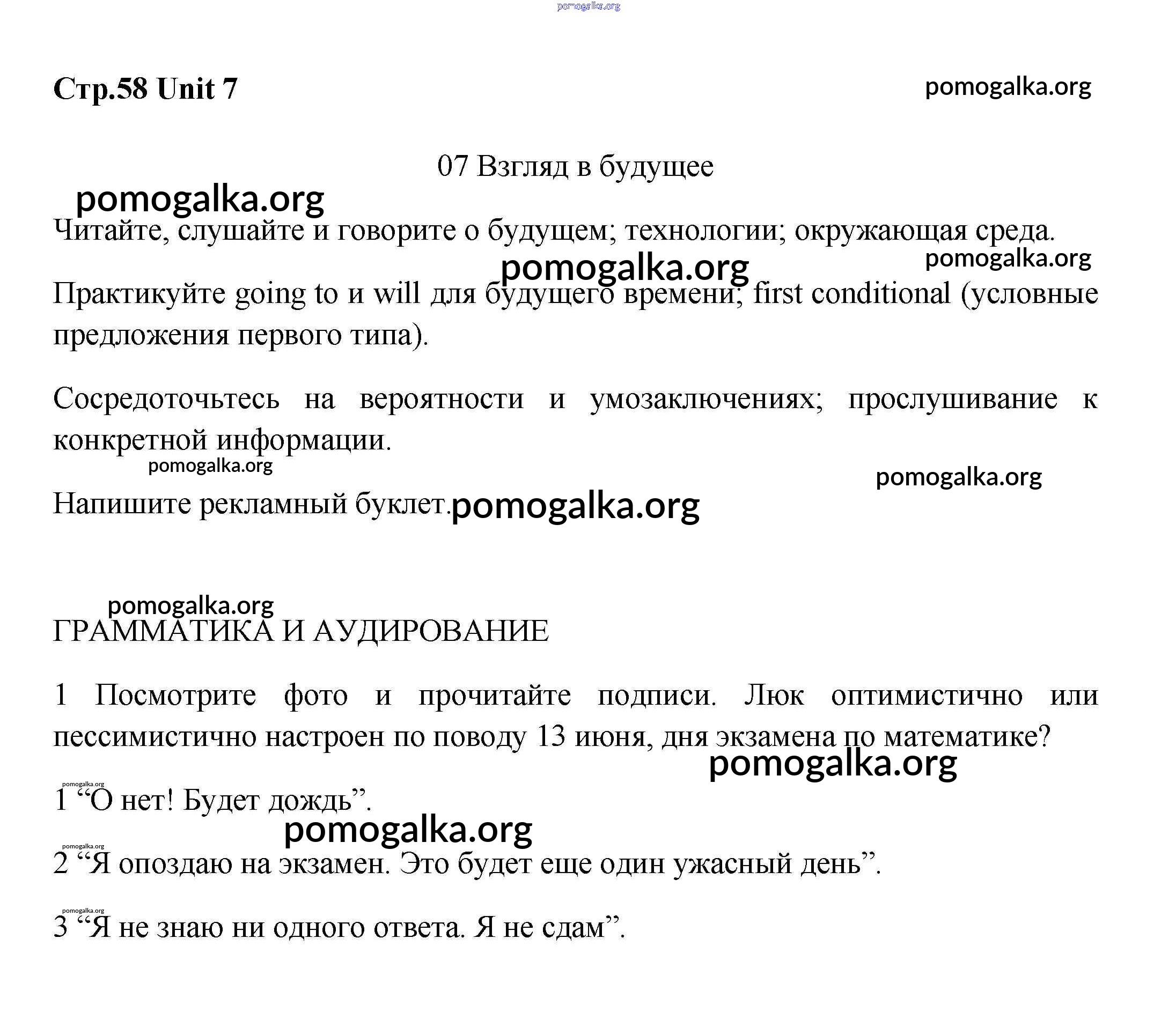 Готовые ответы - Английский язык 8 класс Вербицкая М.В. - unit 7 58