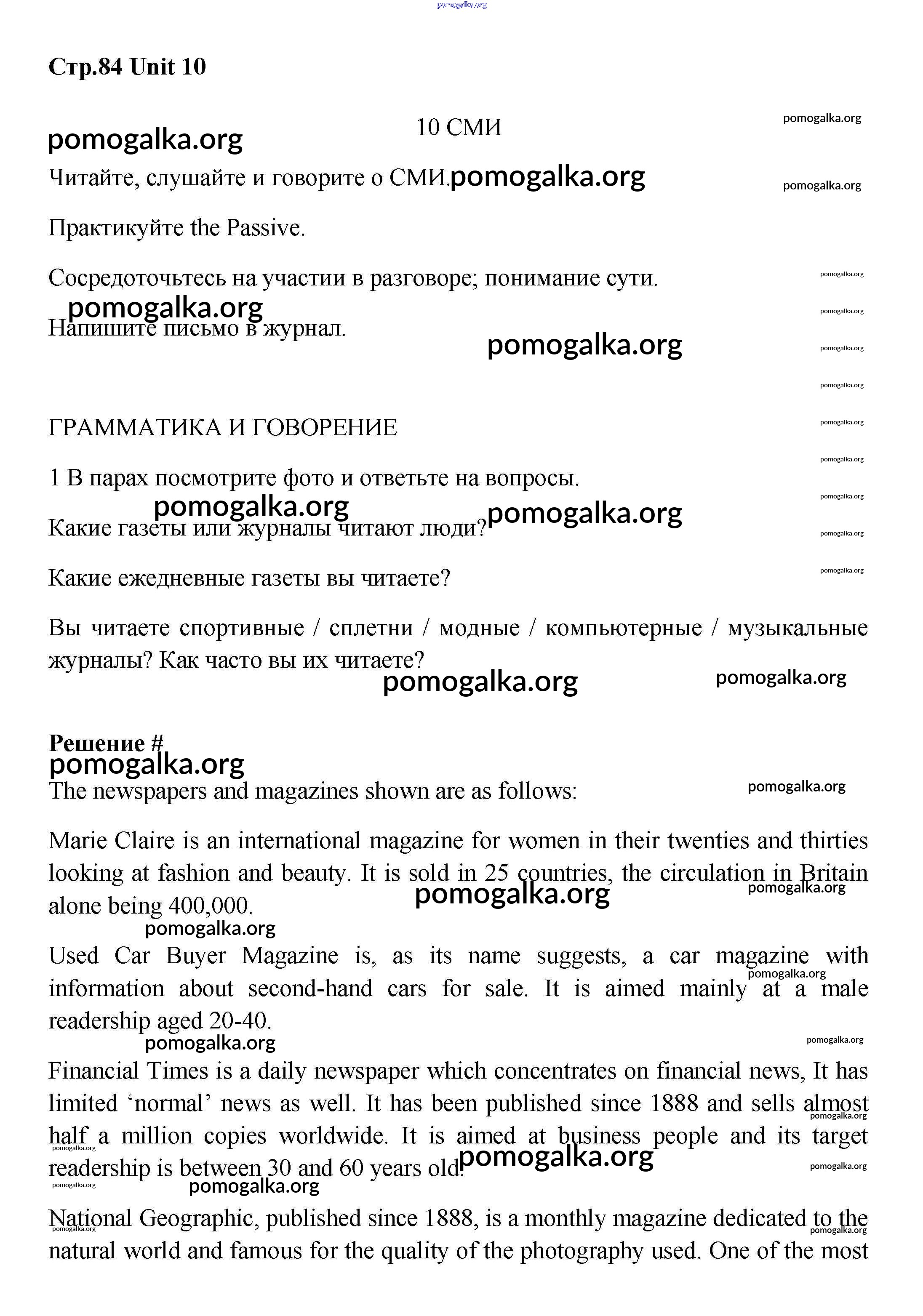 Готовые ответы - Английский язык 8 класс Вербицкая М.В. - unit 10 84