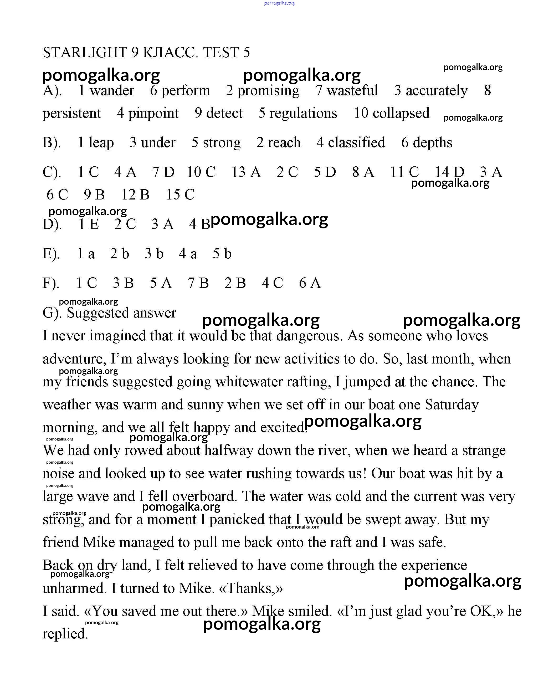 Готовые ответы - Английский язык 9 класс контрольные задания Баранова Starlight - тест 5