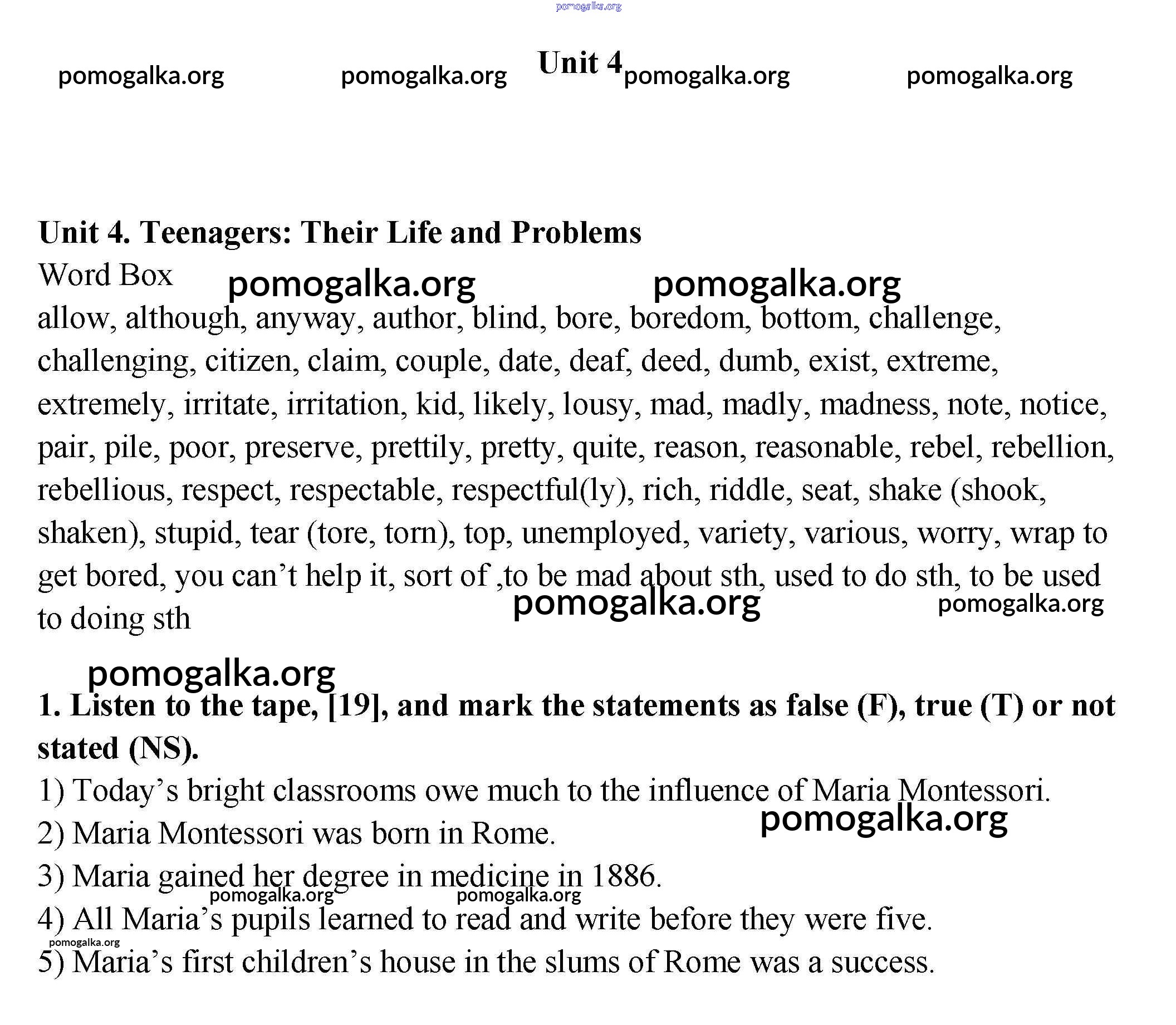 Unit 4. Teenagers