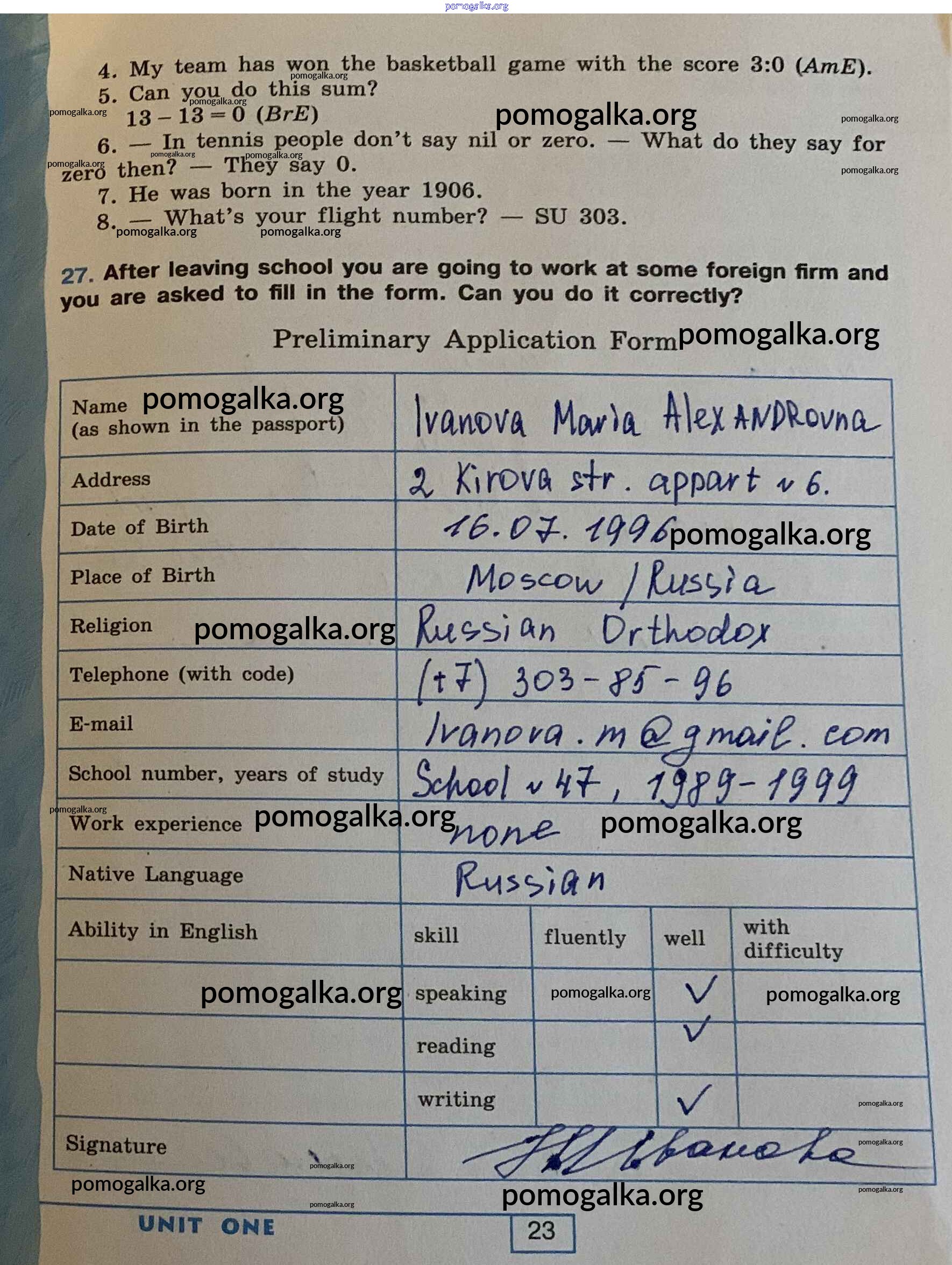 Готовые ответы - Английский язык 9 класс рабочая тетрадь Афанасьева О.В. - unit 1 23
