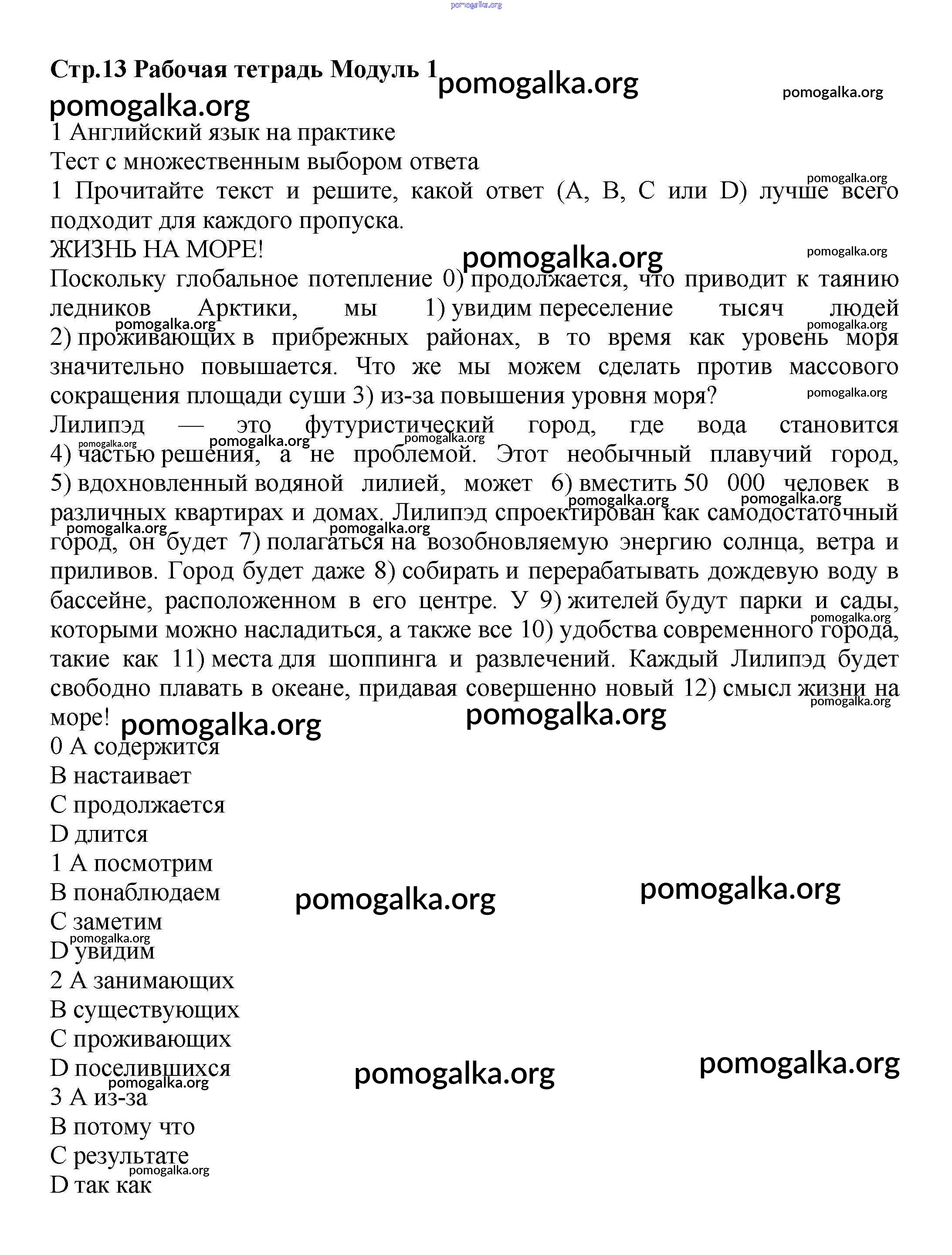Готовые ответы - Английский язык 9 класс рабочая тетрадь Starlight Баранова К.М. - module 1 13