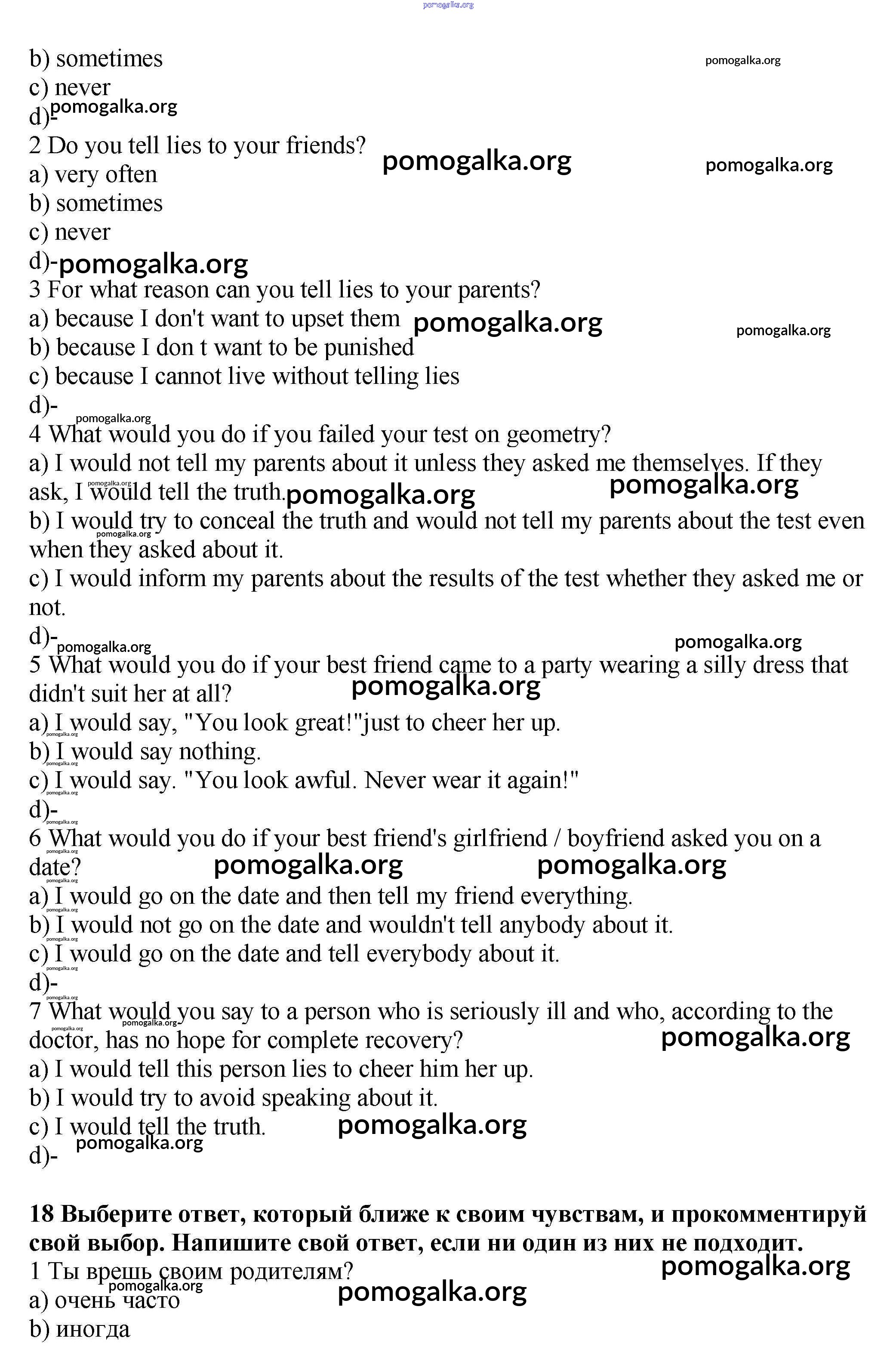 Готовые ответы - Английский язык 9 класс рабочая тетрадь №1 Биболетова - section 1 unit 3 18