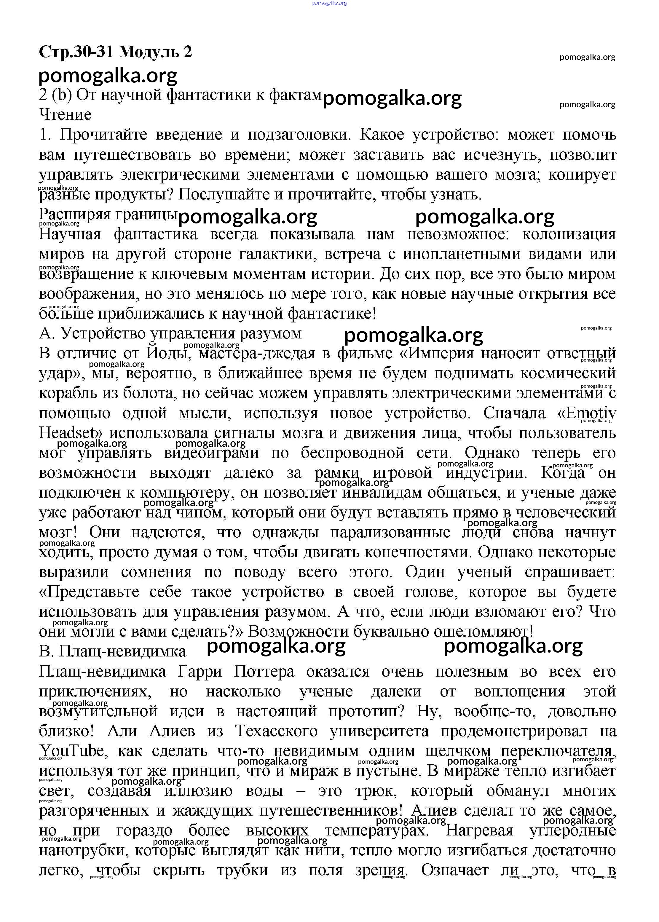 Готовые ответы - Английский язык 9 класс Starlight Баранова К.М. - module 2 30