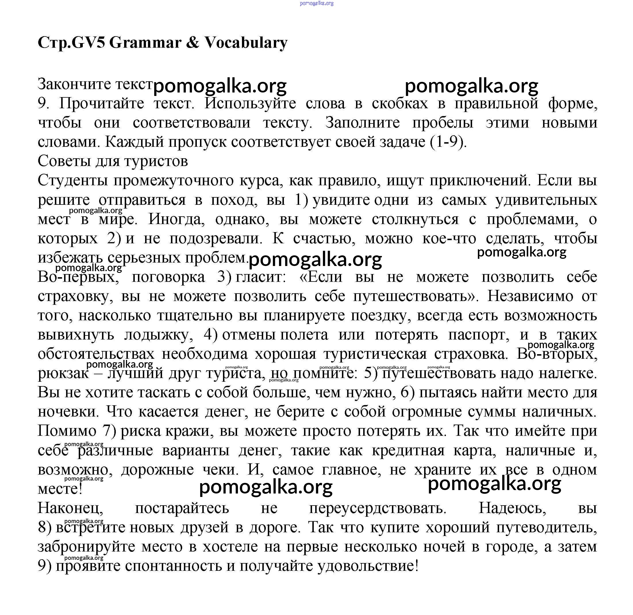 Готовые ответы - Английский язык 9 класс Starlight Баранова К.М. - grammar & vocabulary GV5