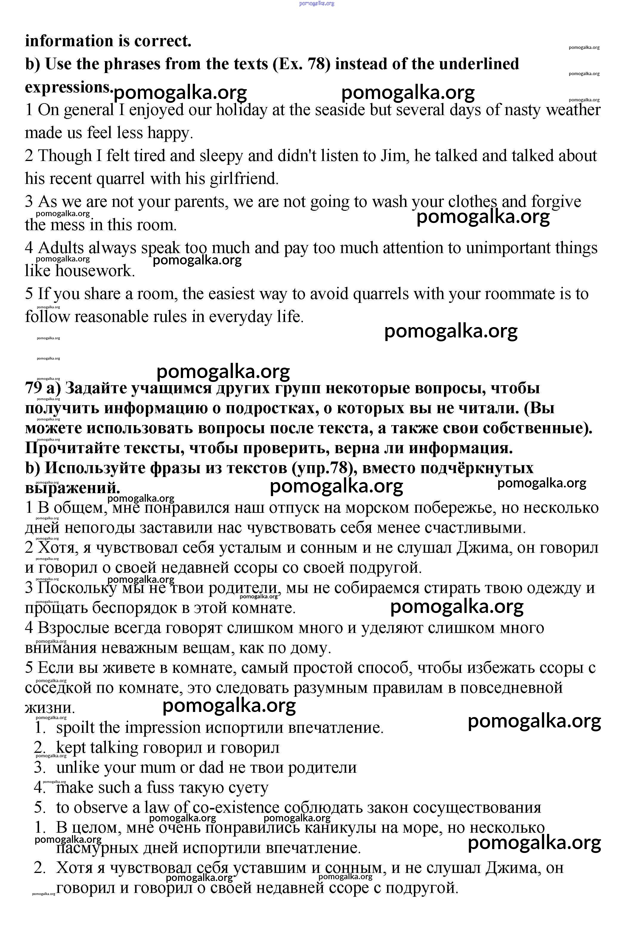 Готовые ответы - Английский язык 9 класс Enjoy English Биболетова - unit 1 79