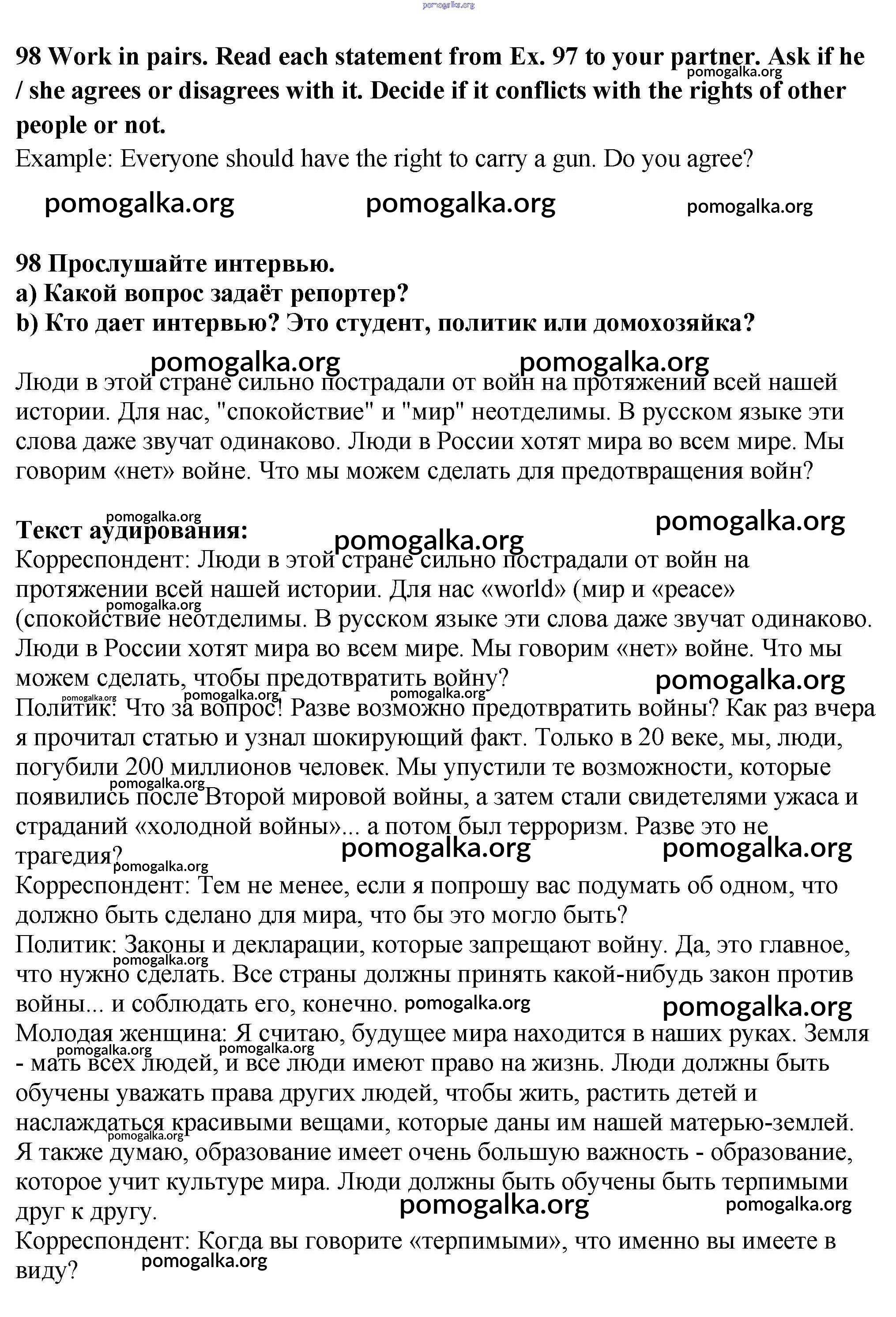 Готовые ответы - Английский язык 9 класс Enjoy English Биболетова - unit 3 98