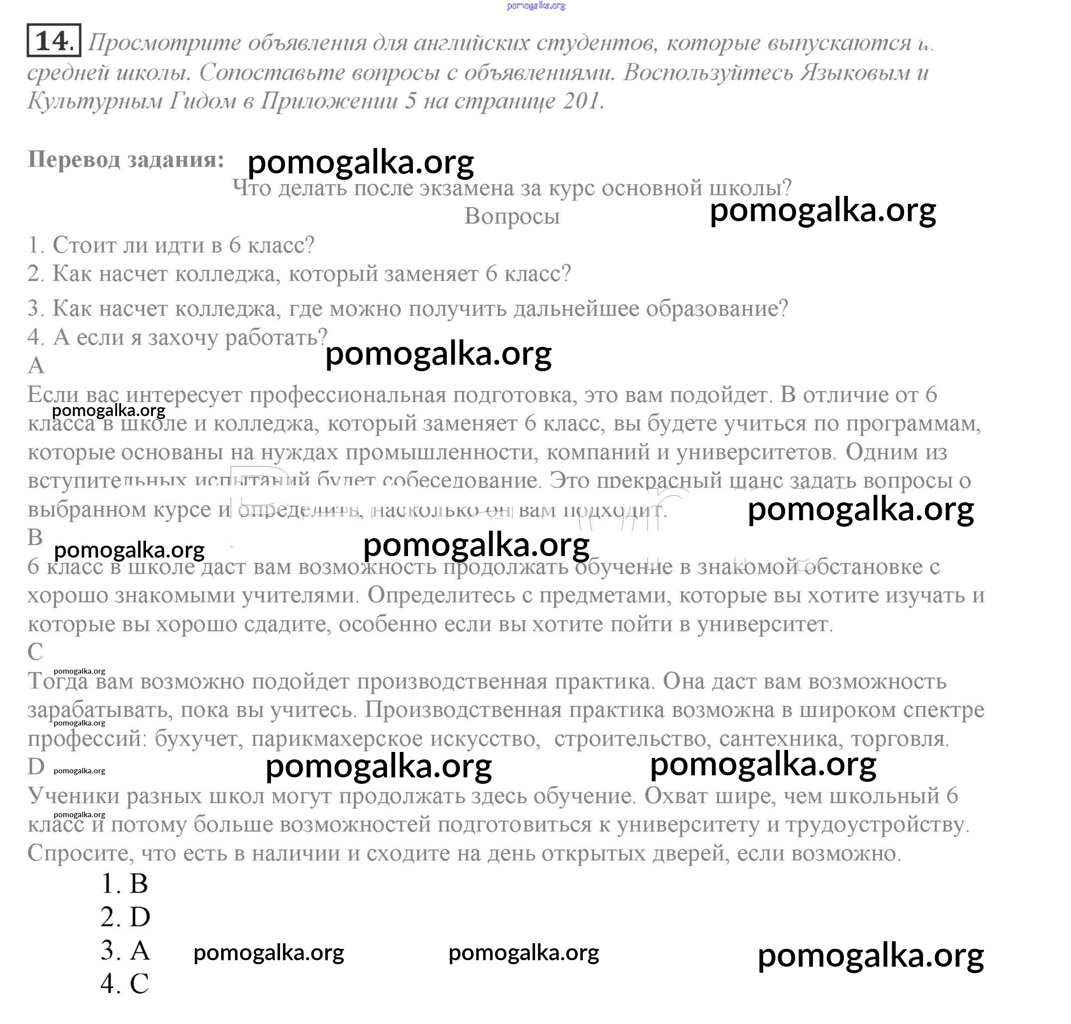 Готовые ответы - Английский язык 9 класс Enjoy English Биболетова - unit 4 14