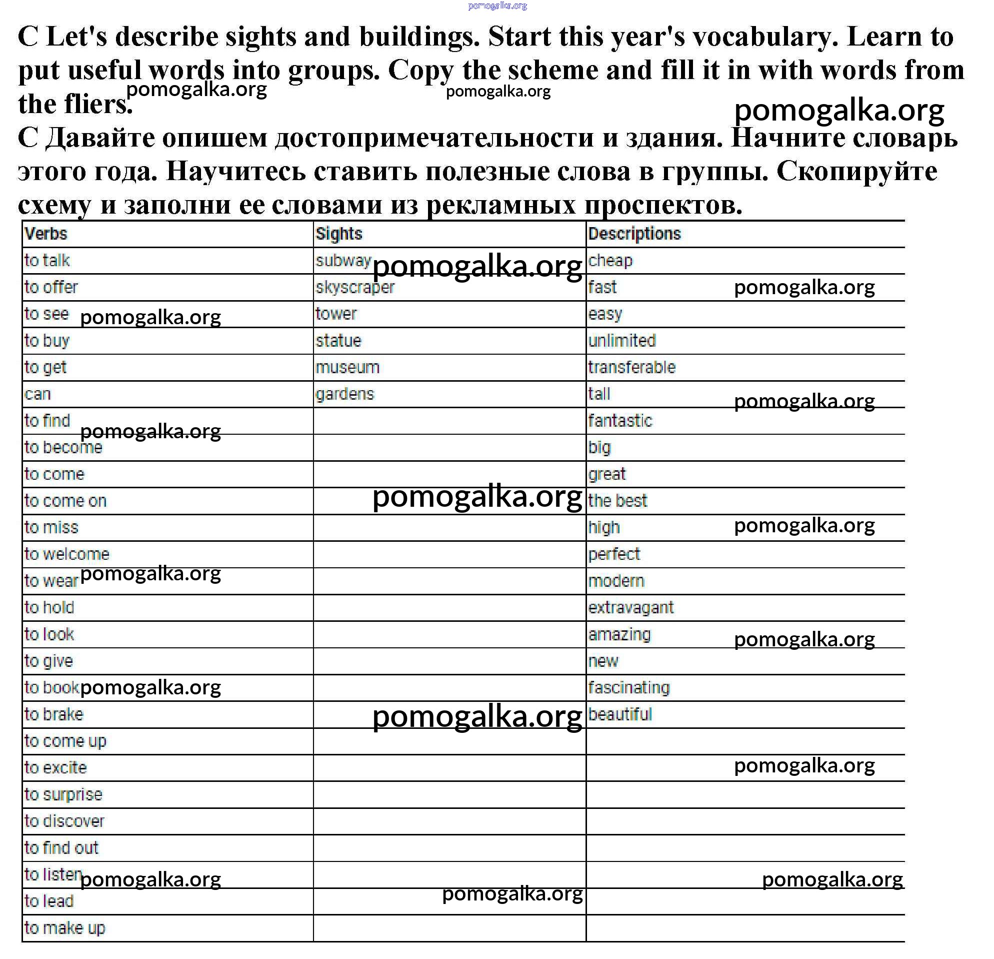 Структурированное пособие на каждый урок