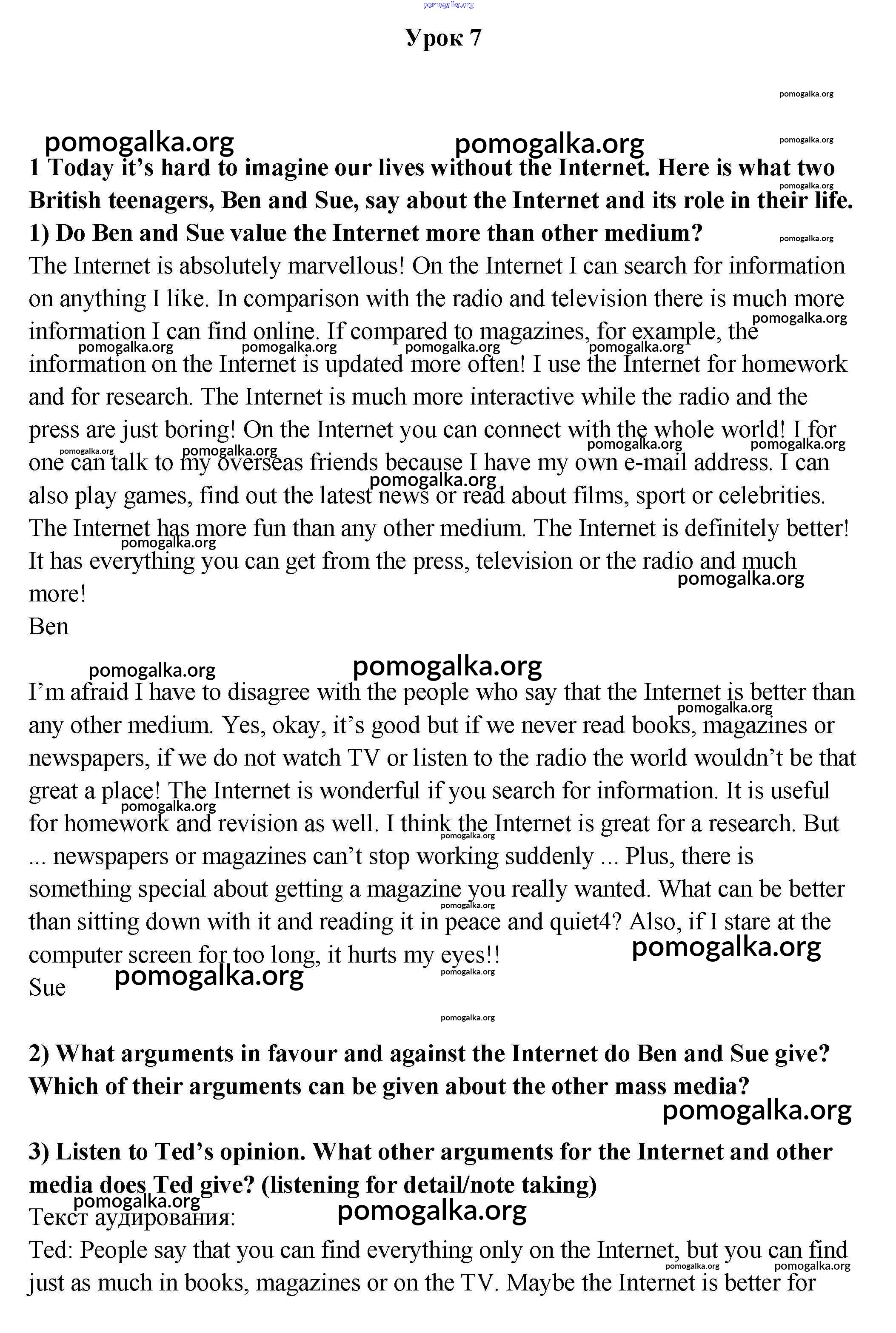 Готовые ответы - Английский язык 9 класс Кузовлев - урок 7 unit 3 1