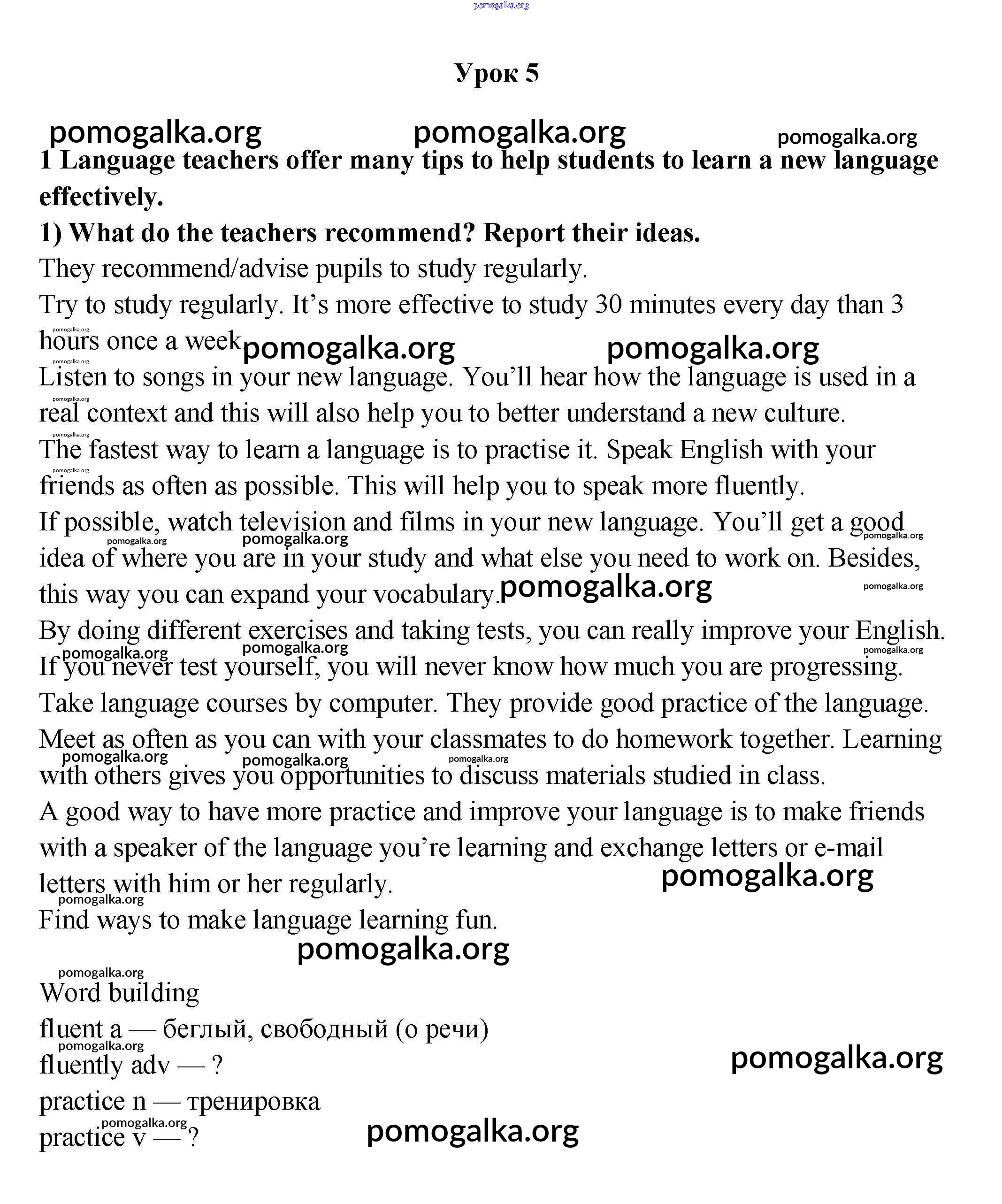 Готовые ответы - Английский язык 9 класс Кузовлев - урок 5 unit 6 1