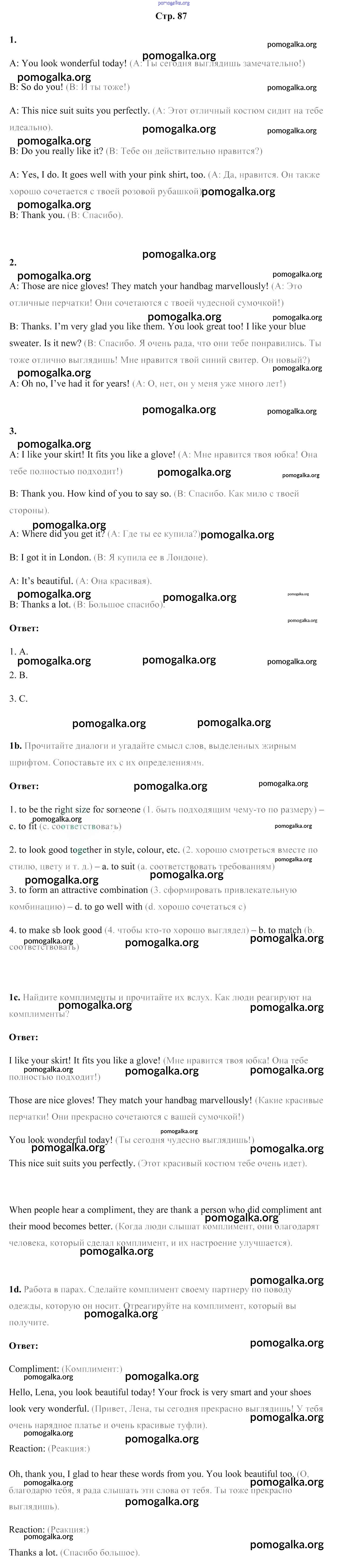 Готовые ответы - Английский язык 9 класс Лапицкая Л.М. - страница 87