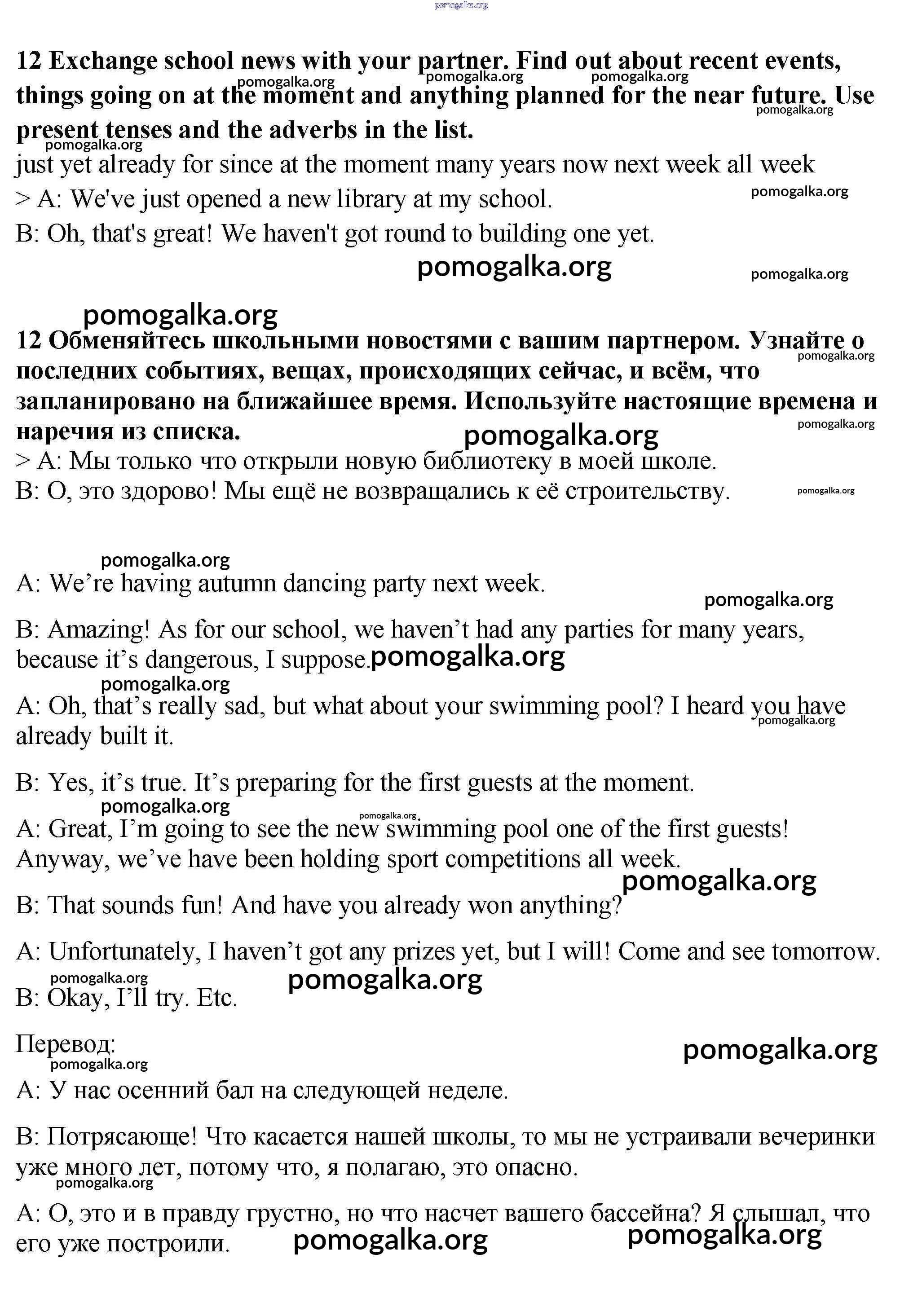 Готовые ответы - Английский язык 9 класс Spotlight Ваулина - часть 1c модуль 1 12