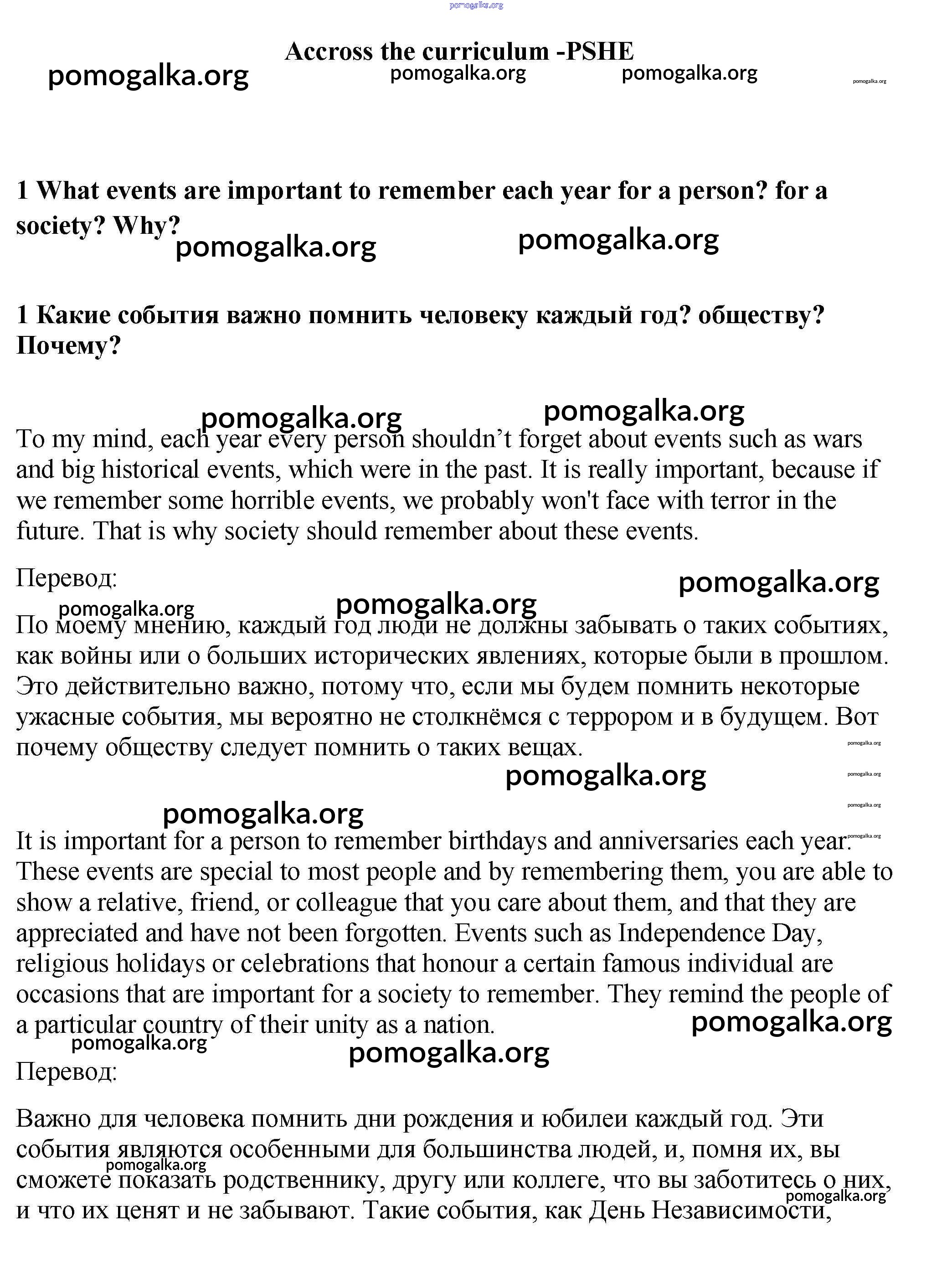 Готовые ответы - Английский язык 9 класс Spotlight Ваулина - accross the curriculum PSHE модуль 1 1