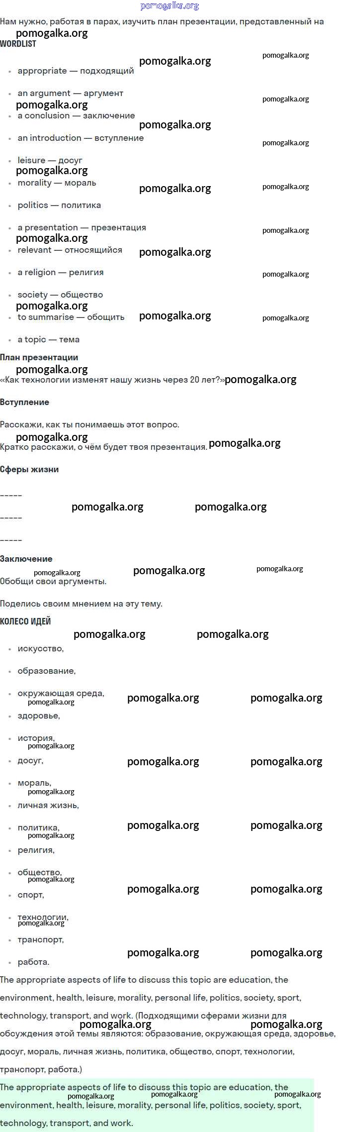 Структурированное пособие на каждый урок